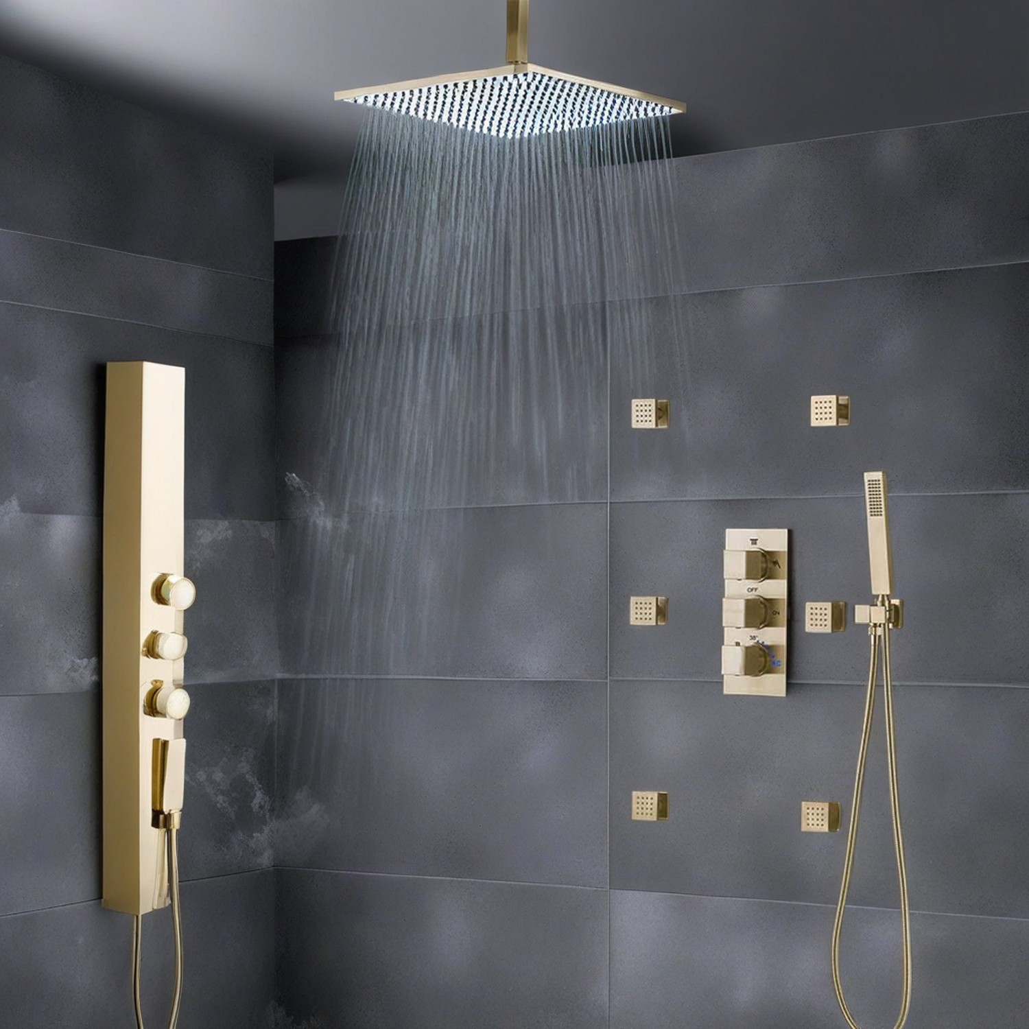 Introducing the state-of-the-art LED rainfall shower system, a luxurious addition to any modern bathroom. Designed to elevate your shower experience to a spa-like level, this elegant fixture boasts advanced features and a sleek, contemporary design. The large square shower head, finished in a sophisticated brushed gold, is the centerpiece of this system. Equipped with LED lights that change color with the water temperature, it provides visual feedback and creates an ambient atmosphere for relaxation. Transitioning from blue to green to red, the lights indicate cold, warm, and hot water, respectively.<br><br><img src="https://react.homedecbath.com/wp-content/uploads/2024/03/K.jpg" width="1500" height="1500" alt="Shower system bathroom shower systems shower bath system shower sytem bathroom shower system"><br><br>Complementing the overhead shower are four strategically placed body jets, offering a full-body massage effect and enhancing the showering experience with a soothing cascade of water. The handheld shower wand provides additional flexibility and convenience, making it easy to rinse off or clean the shower space.<br><br>The system’s controls are streamlined and user-friendly, with a sleek panel for precise adjustments to water flow and temperature. The valves ensure smooth operation, allowing for a seamless transition between different spray modes.<br><br>Crafted from high-quality materials, this shower system is not only visually appealing but also durable and designed to withstand the test of time. The brushed gold finish adds a touch of opulence to the bathroom decor while providing a tarnish and corrosion-resistant surface.<br><br>This LED rainfall shower system is the perfect fusion of technology, design, and comfort, an investment in your daily well-being. It transforms your bathroom into a sanctuary of relaxation and rejuvenation.<br><br>This luxurious shower system is offered by Guangzhou HomeDec Sanitary ware co.,ltd, a company specializing in designing and manufacturing high-quality shower and faucet bathroom accessories. With over 10 years of production experience, the company is equipped with advanced production facilities and inspection apparatus. Their products, including LED shower heads, are popular worldwide and are WaterMark authenticated, emphasizing their commitment to quality control. It’s the perfect investment for those who appreciate the fusion of technology, design, and comfort in their home.