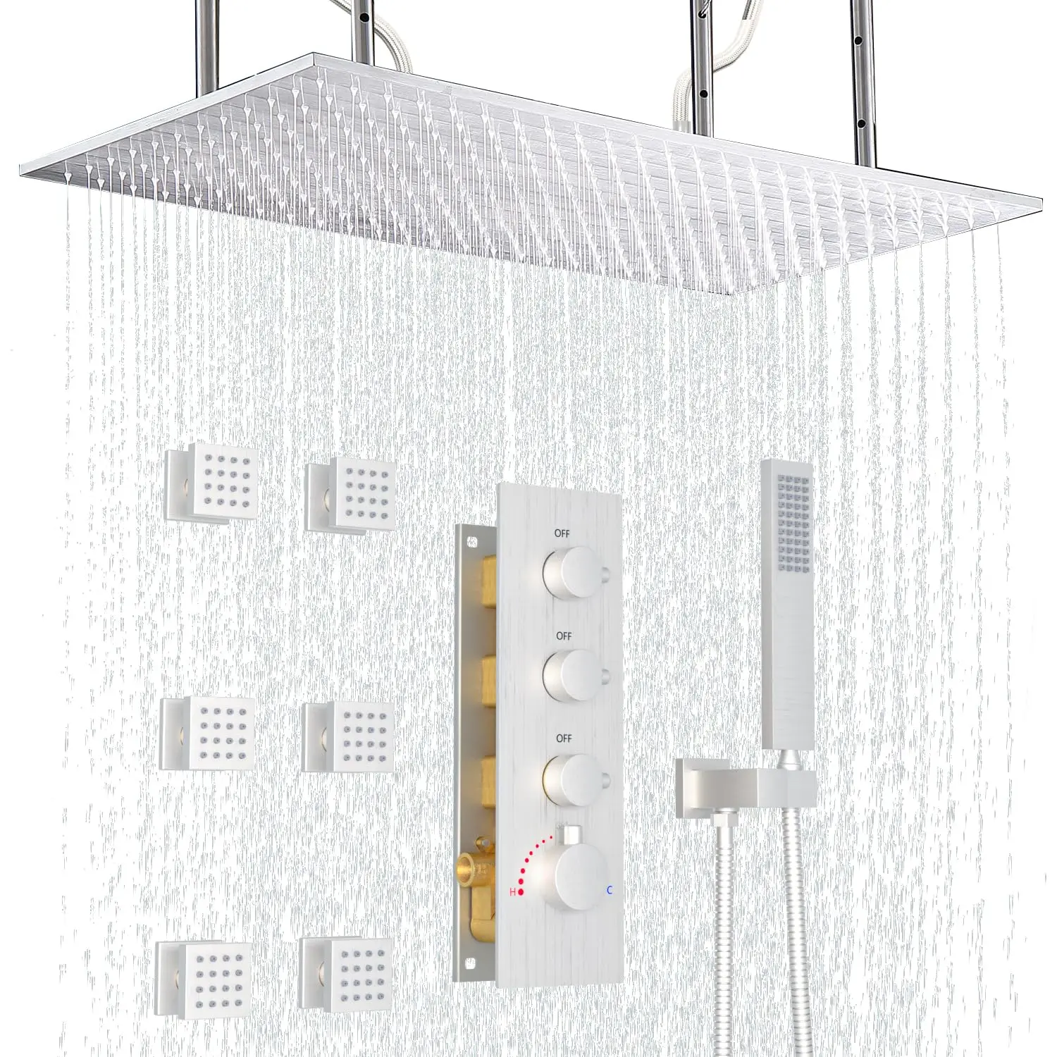 Introducing the ultimate in bathroom luxury, the Ultra-Modern Rainfall Multi-Function Shower System from Guangzhou HomeDec Sanitary ware co.,ltd. This exquisite shower system is designed to transform your daily routine into a spa-like experience, right in the comfort of your own home. The centerpiece of this advanced shower system is the oversized square overhead rainfall showerhead. Crafted from high-quality, durable stainless steel, it provides a generous and evenly distributed cascade of water, mimicking the soothing sensation of natural rainfall. This bathroom shower system promises to reduce stress and rejuvenate your senses, creating a tranquil and immersive shower experience.