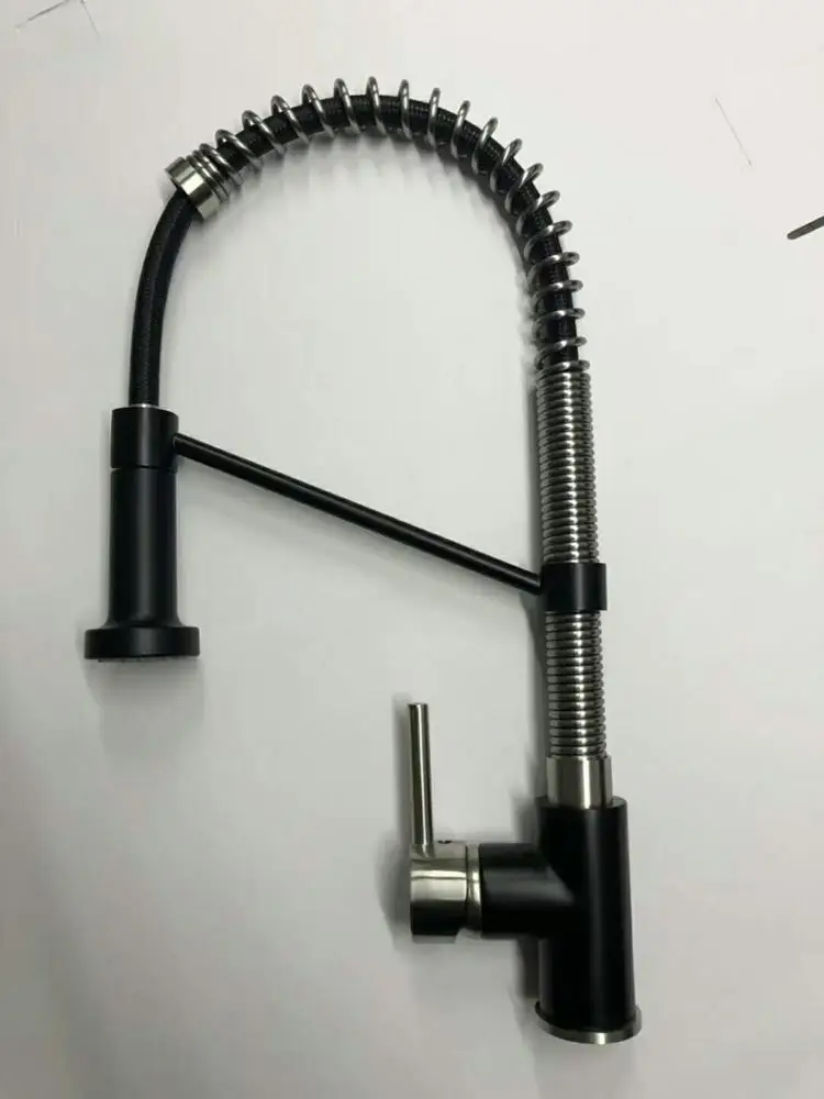 What sets this kitchen faucet apart from others is its stunning high-arch spring design, which exudes industrial elegance. The matte black finish ensures it seamlessly fits into any modern kitchen decor. Not only does it offer a visually pleasing appearance, but it also provides a durable and resilient surface that withstands the test of time. Its flexible hose along with a reinforced coil spring offers effortless maneuverability, making it perfect for a variety of kitchen tasks such as rinsing vegetables and washing dishes.