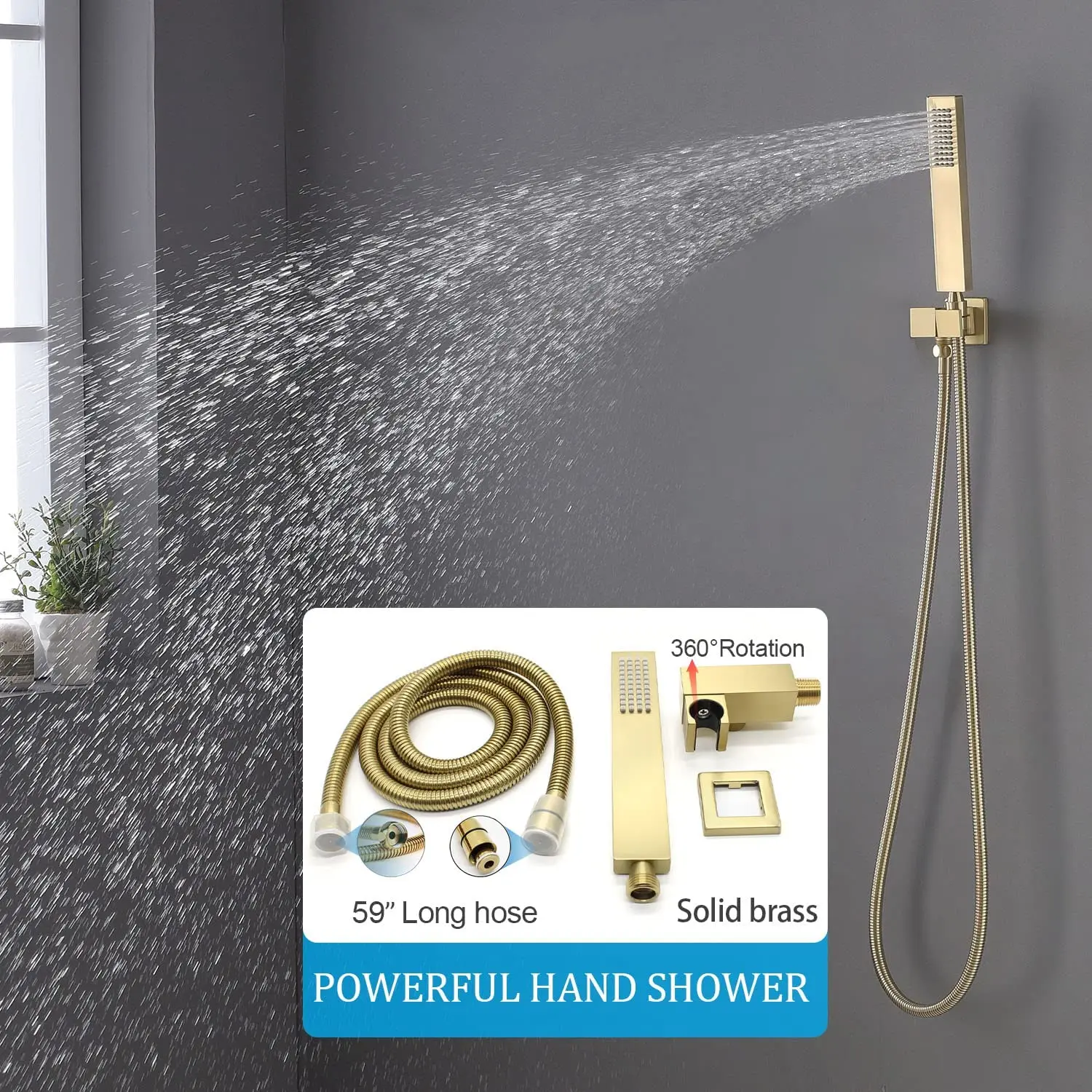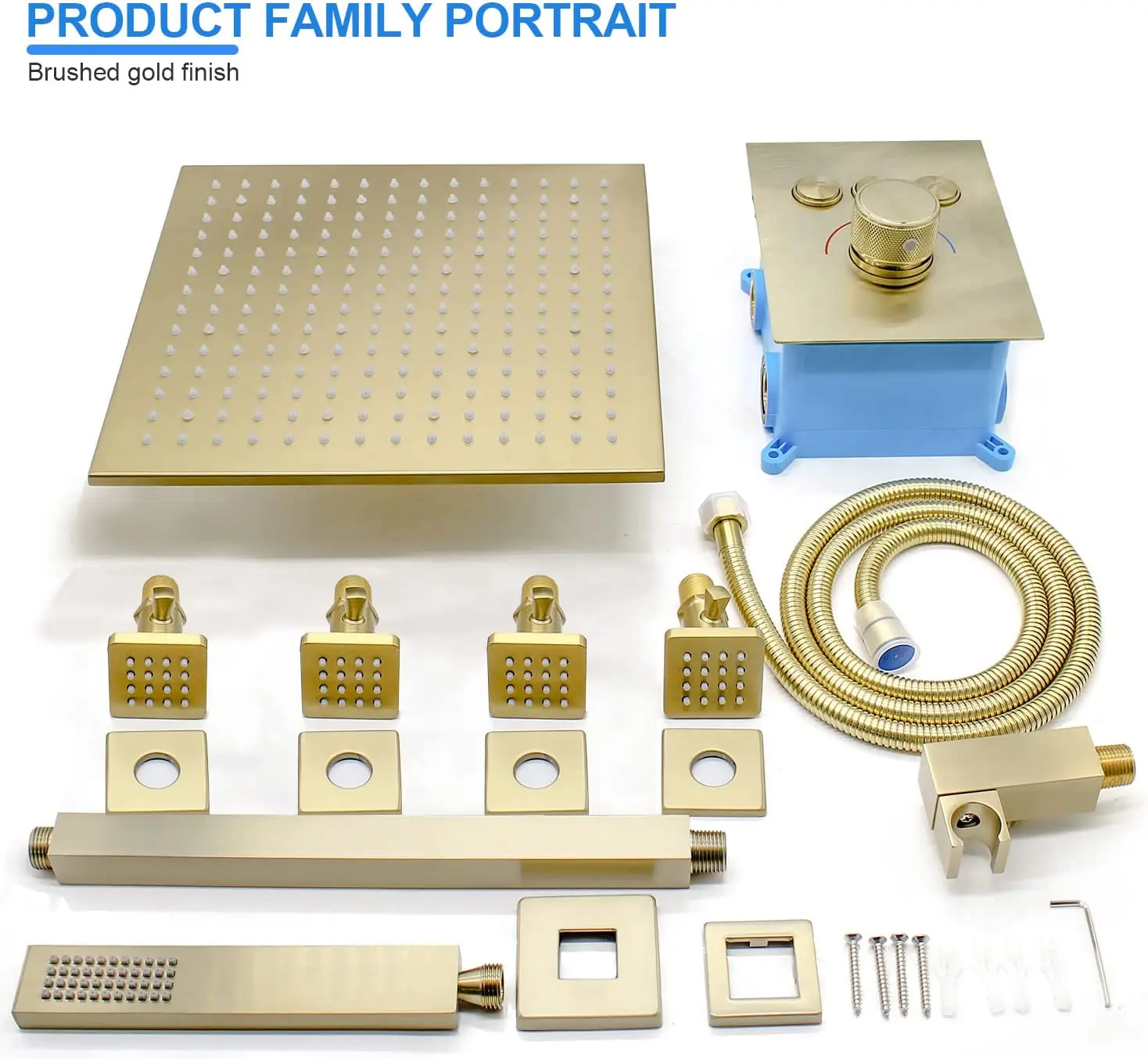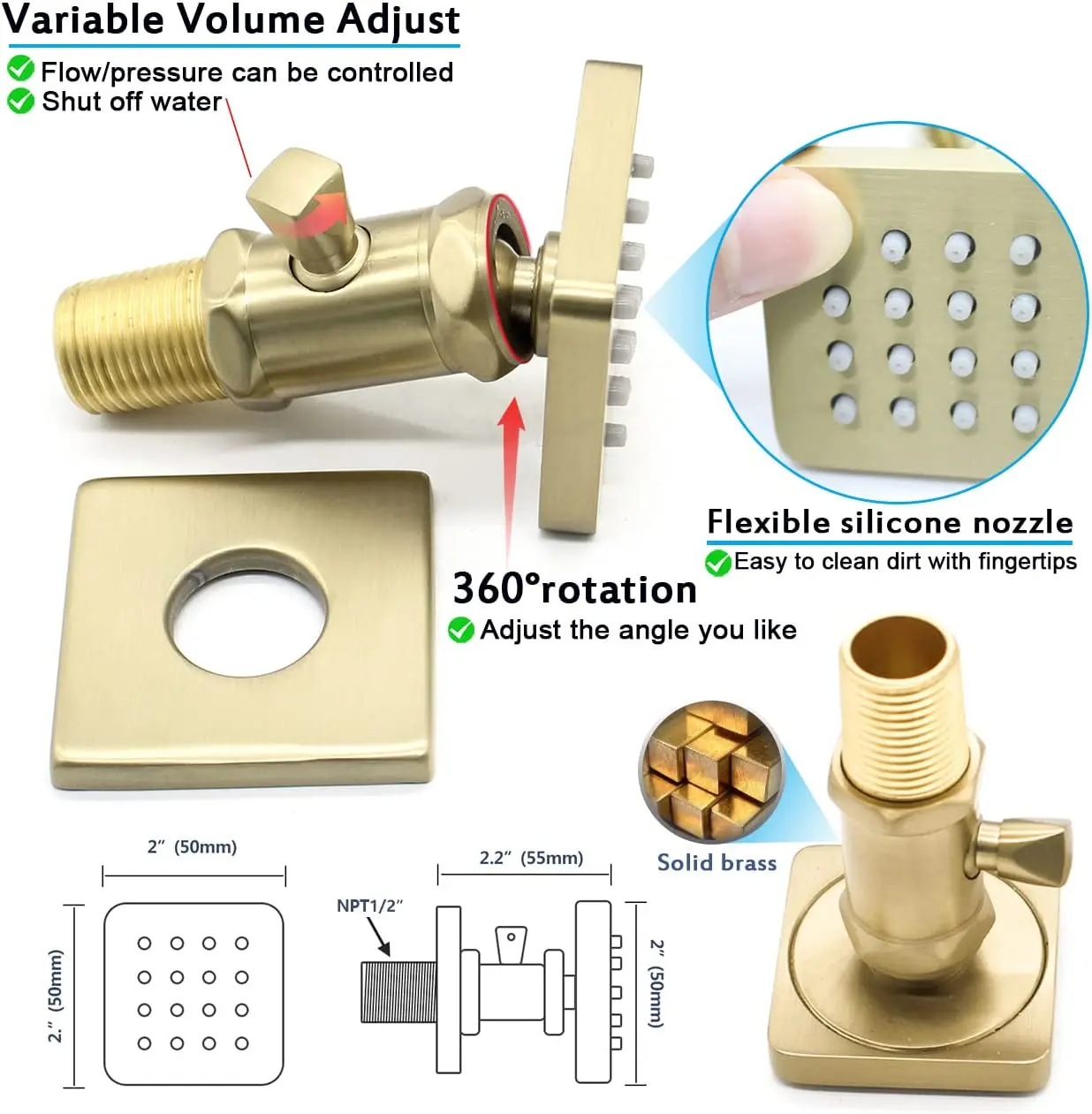 4 Pcs shower Body jets with on off ( Brass ), handheld shower head and holder(Brass),