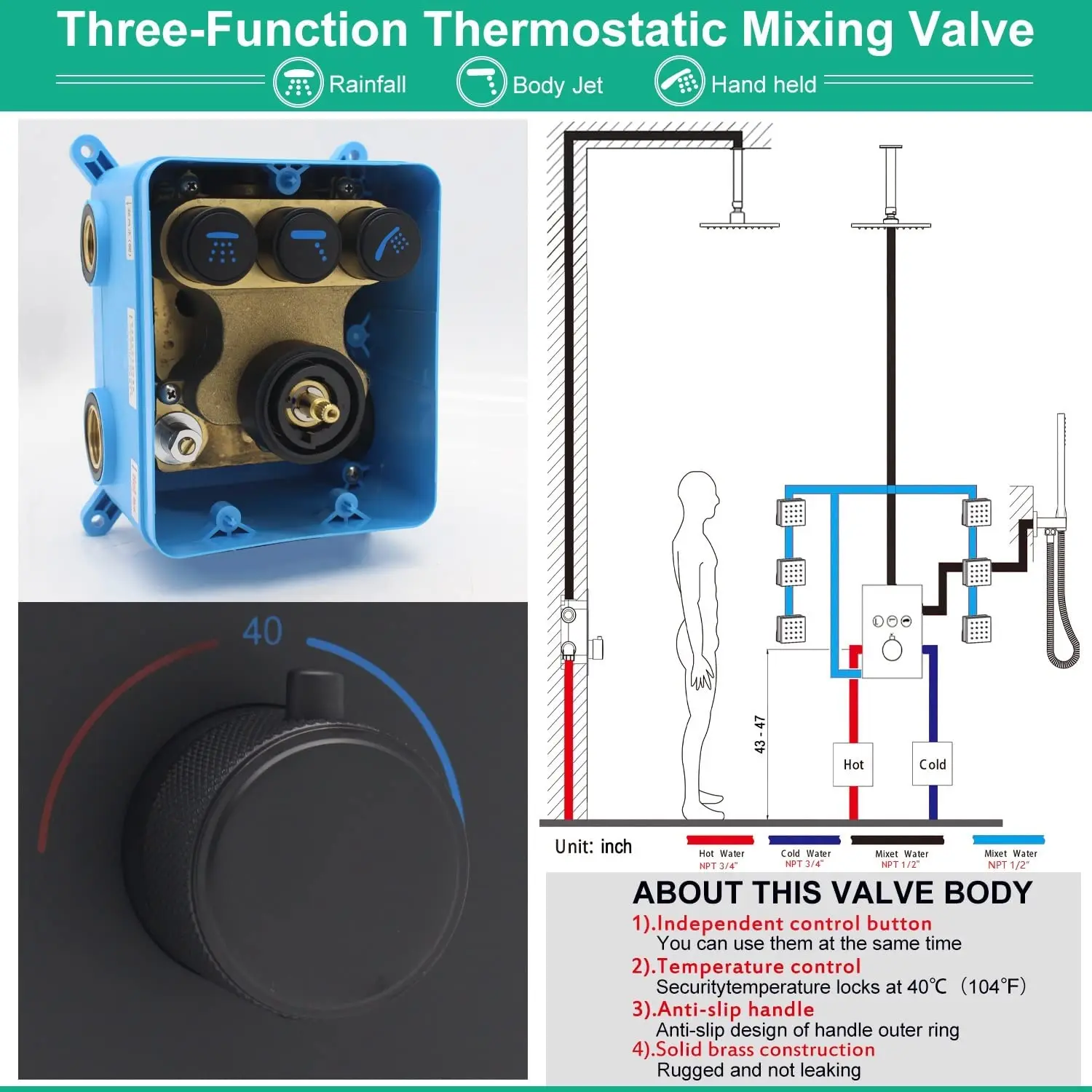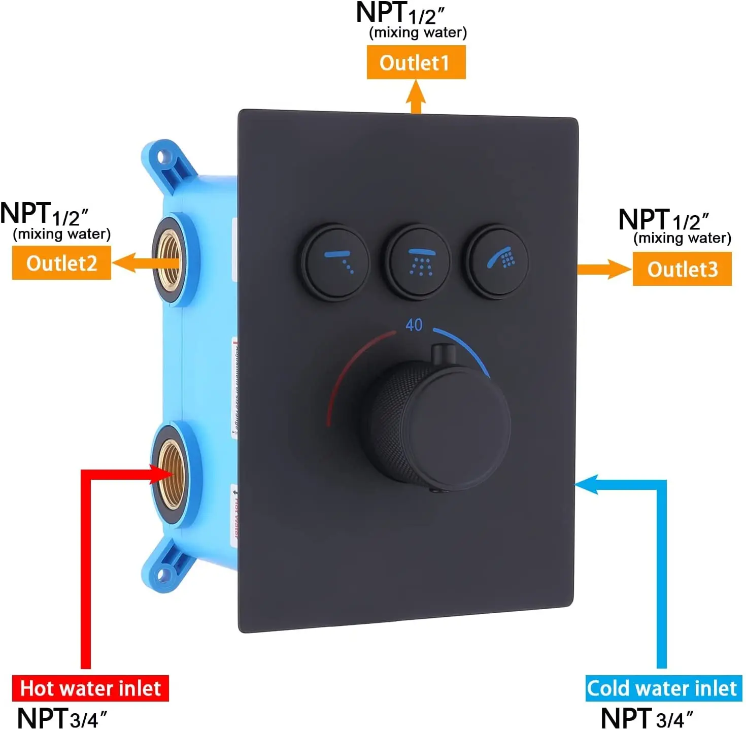 * uD83DuDC4D【All shower heads can be used at the same time】 Our rain shower system is equipped with thermostatic shower mixing valve, cUPC