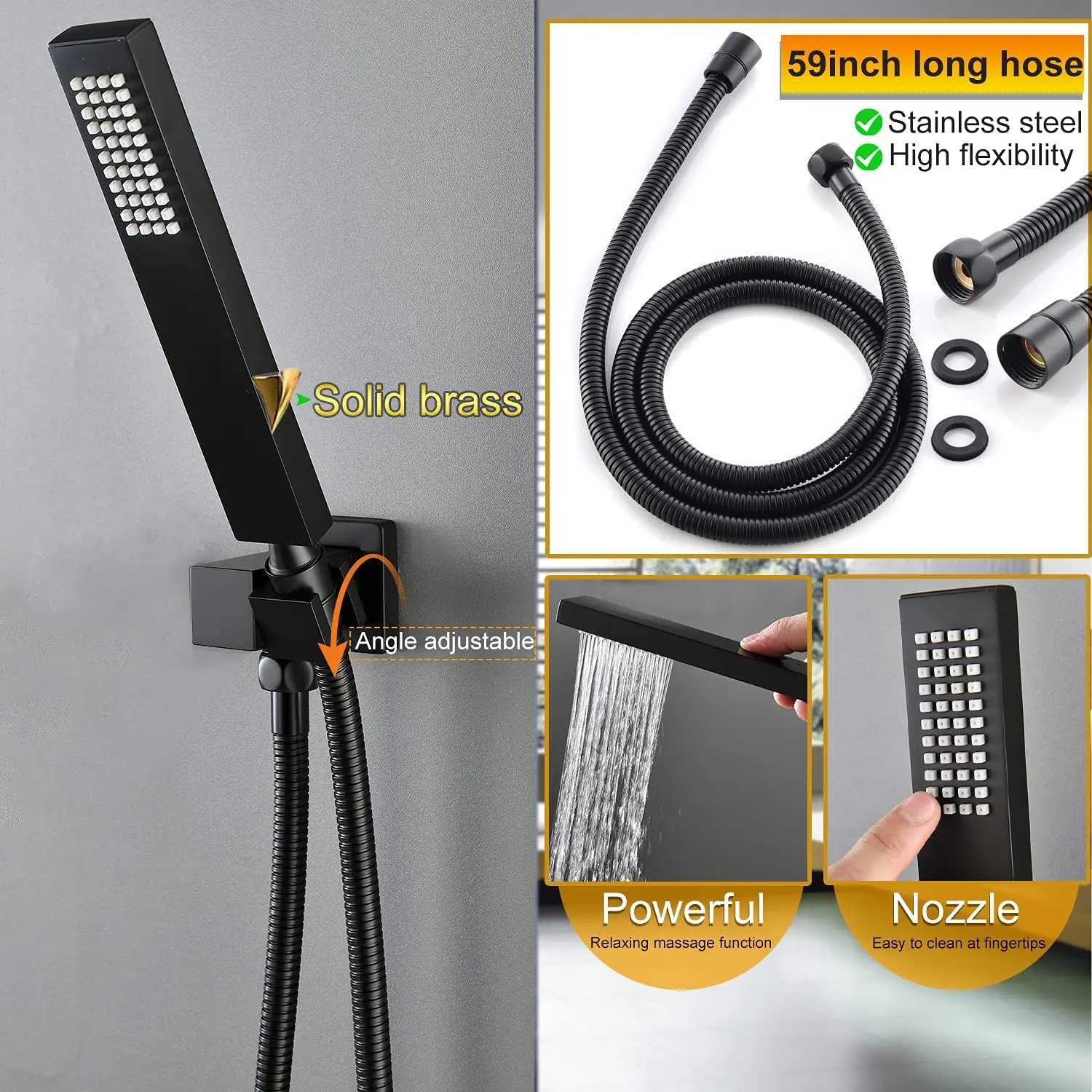 12 Inch Rain Shower Head (304 Stainless Steel), 16 Inch Wall Mounted Shower Arm (Brass), Handheld Shower Head with 59 inch hose and holder |