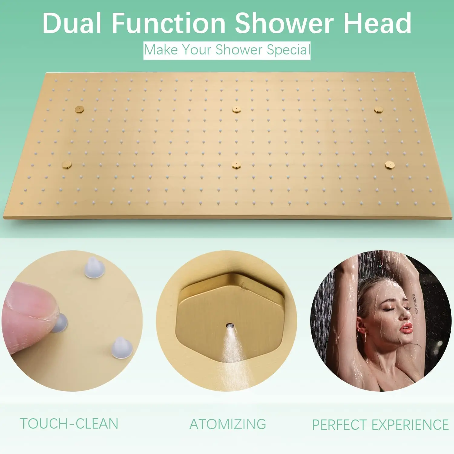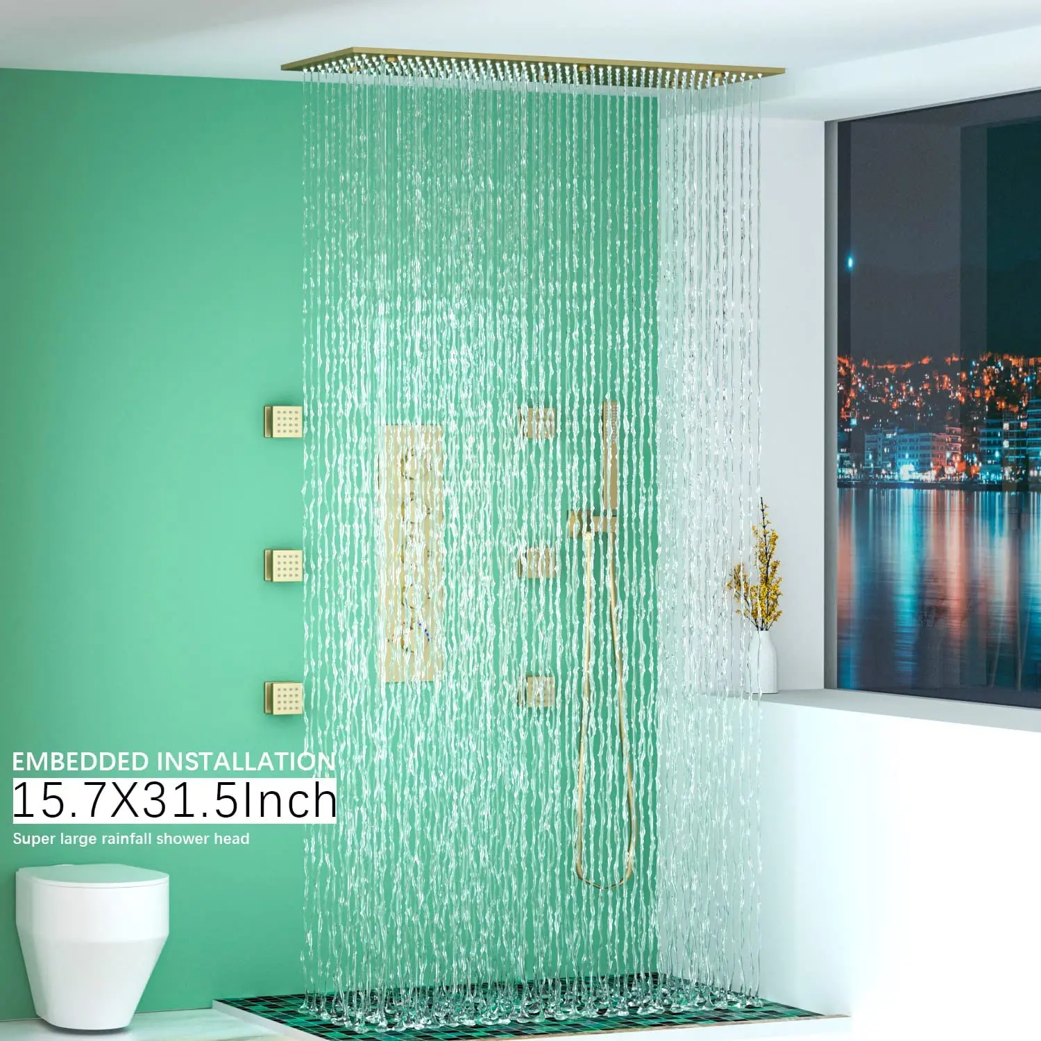 15.7 inches * 31.5 inches super large shower head, large enough shower space to enjoy the shower to the fullest. The complete