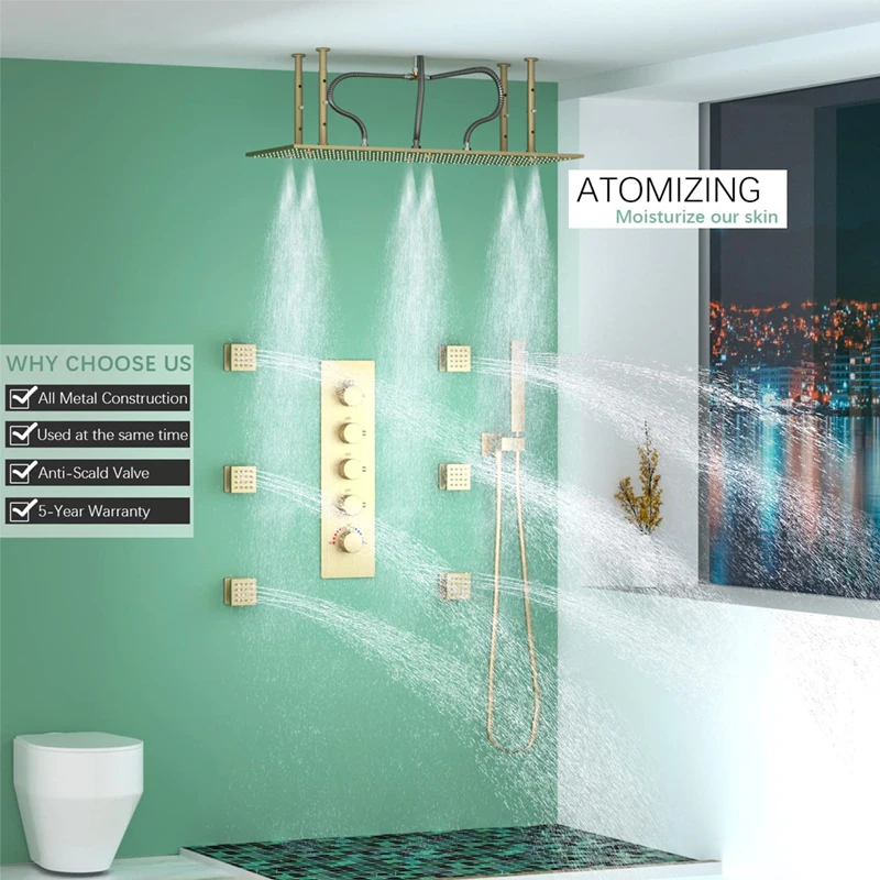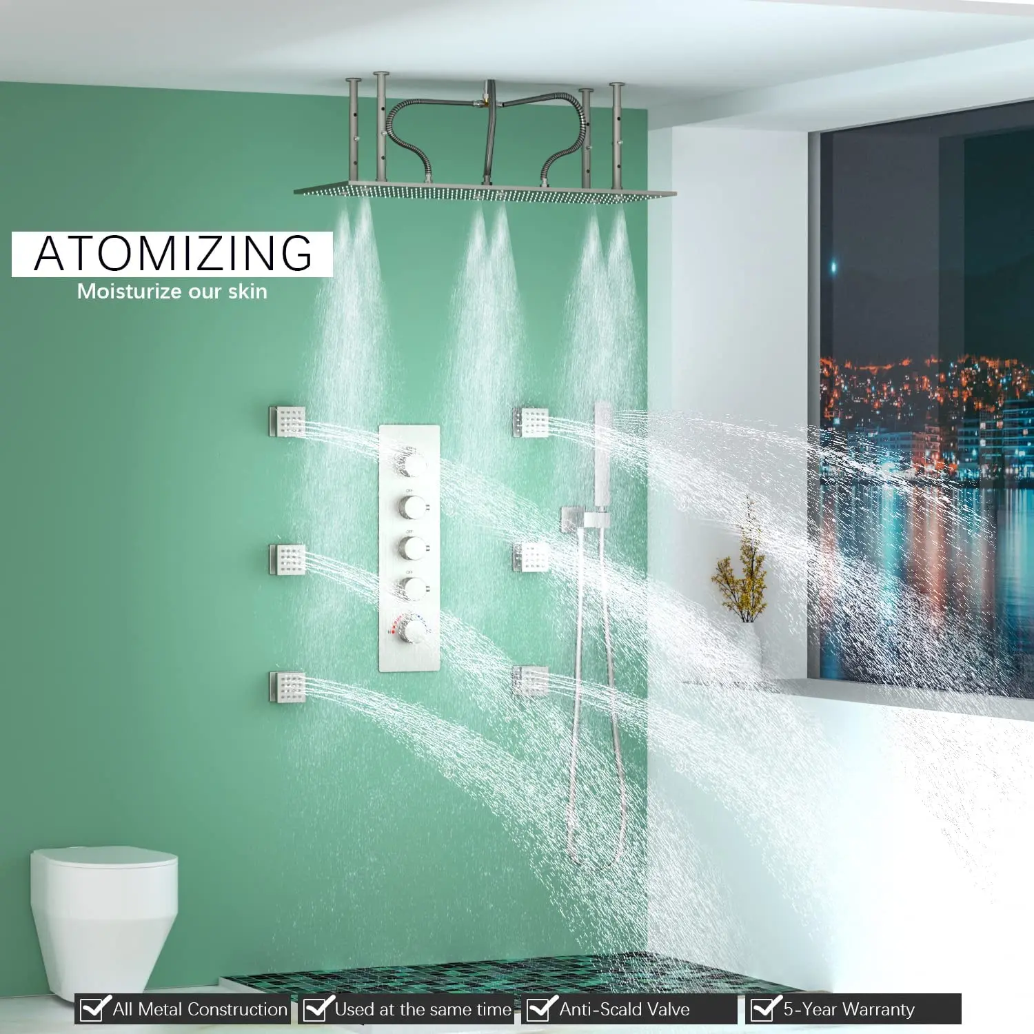 16” Oil Rubbed Bronze Large Rainfall Shower System Thermostatic Valve Wall Mount shower set
