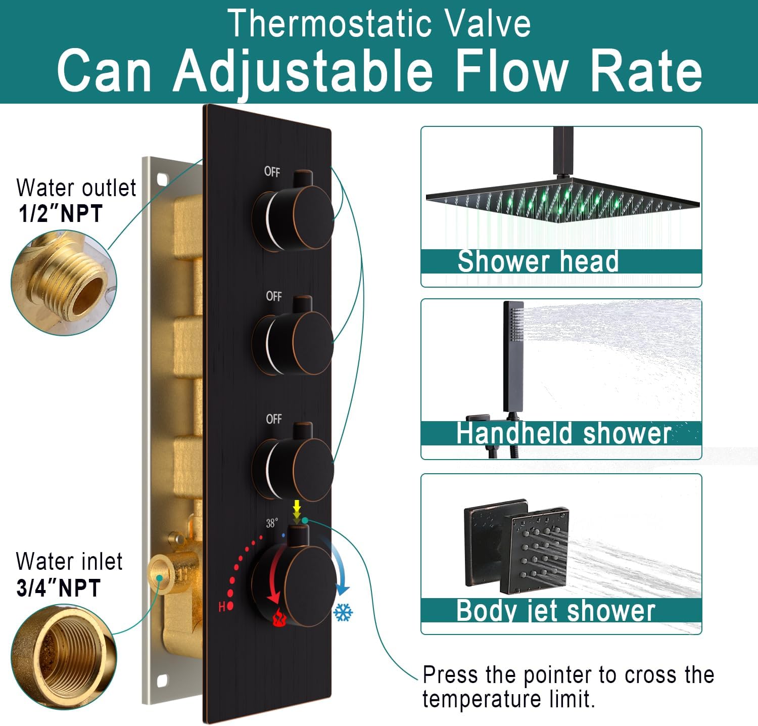 16inch Shower Jets System with 4-handle Valve Replacement Full Set Backup