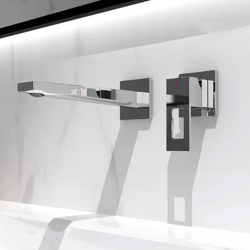 Wall mounted Brushed gold Square Brass basin faucets Hot and Cold Water Tap Mixer