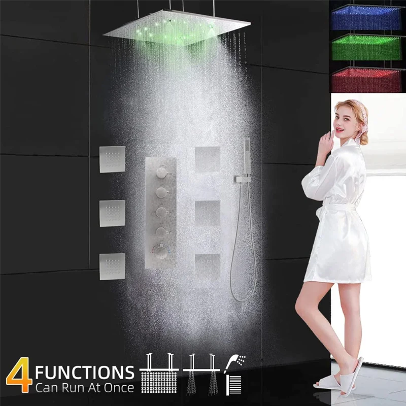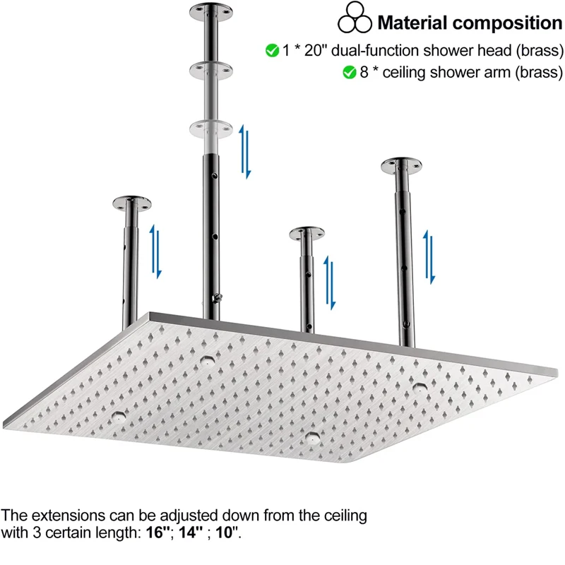 2. 20inch square Dual-function showerhead: rainfall + mist fog mode.