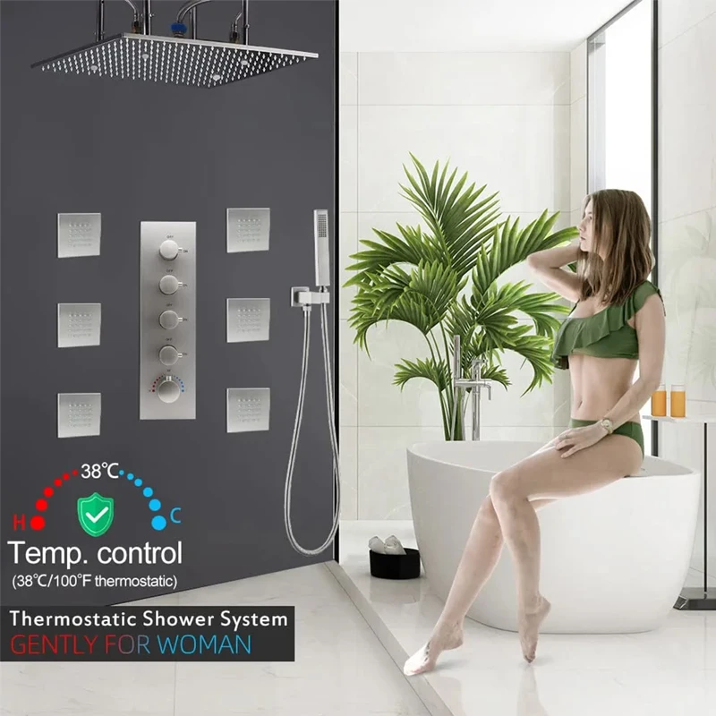 3. Anti-scald: Thermostatic mixing shower valve – No need to change the temperature each time, especially friendly for children and the elderly.