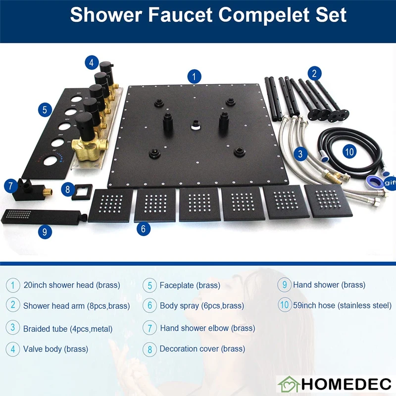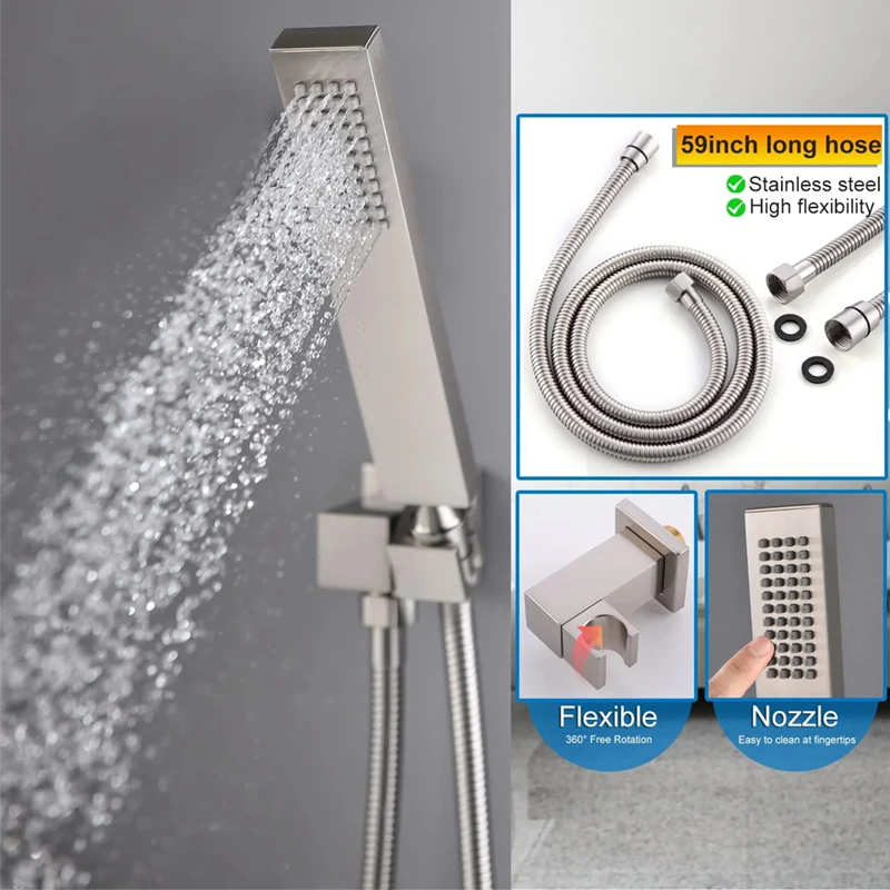 [ QUICK INSTALLATION ] Designed to easily install with standard plumbing connections. A full set faucet includes dual function showerhead, body spray and hand shower set