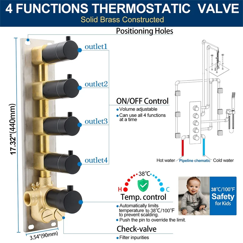 [ ANTI-SCALD TEMPERATURE CONTROL ] Thermostatic valve supplies water at a constant required temperature, ensure safety to prevent you from being scald.