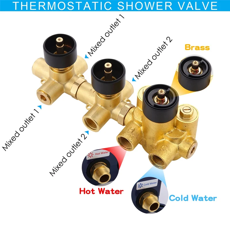 【THERMOSTAT SHOWER MIXING VALVE】:Precise Temperature Control, so that the water temperature can be safely stopped at 100 degrees ℉. Universal thermostatic shower valve, pressure balancing shower diverter avoids the discomfort caused by sudden changes in water temperature and is very suitable for the elderly or children, which features scald prevention, more considerate for your family.