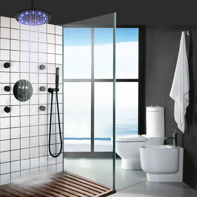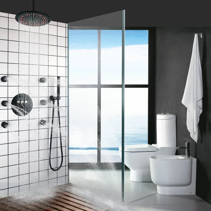 10 Inch Wall Mounted LED Rain Shower Head System with Thermostatic Mixer