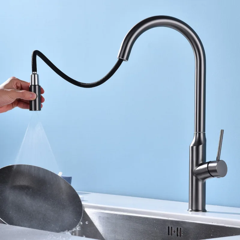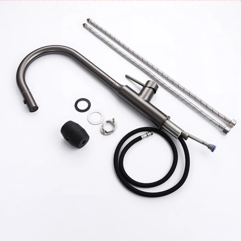 304 stainless steel pull out kitchen faucet Lengthened double-mode water outlet kitchen hot and cold faucet