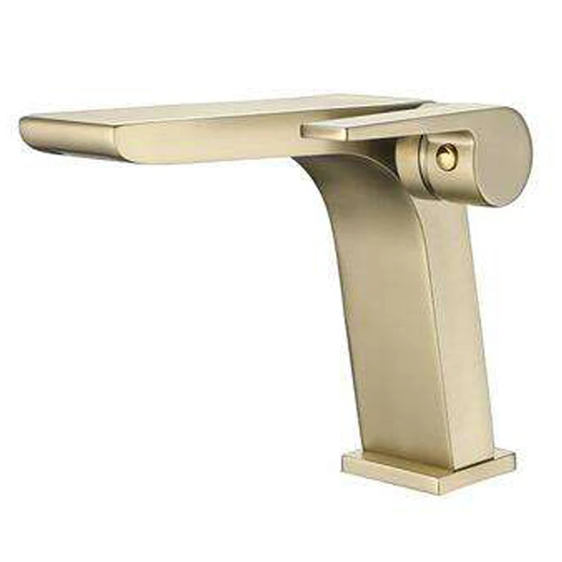 Bathroom Faucet Bathroom Sink Faucet Single Hole Single Handle Deck Mounted Brush gold with Deck Plate