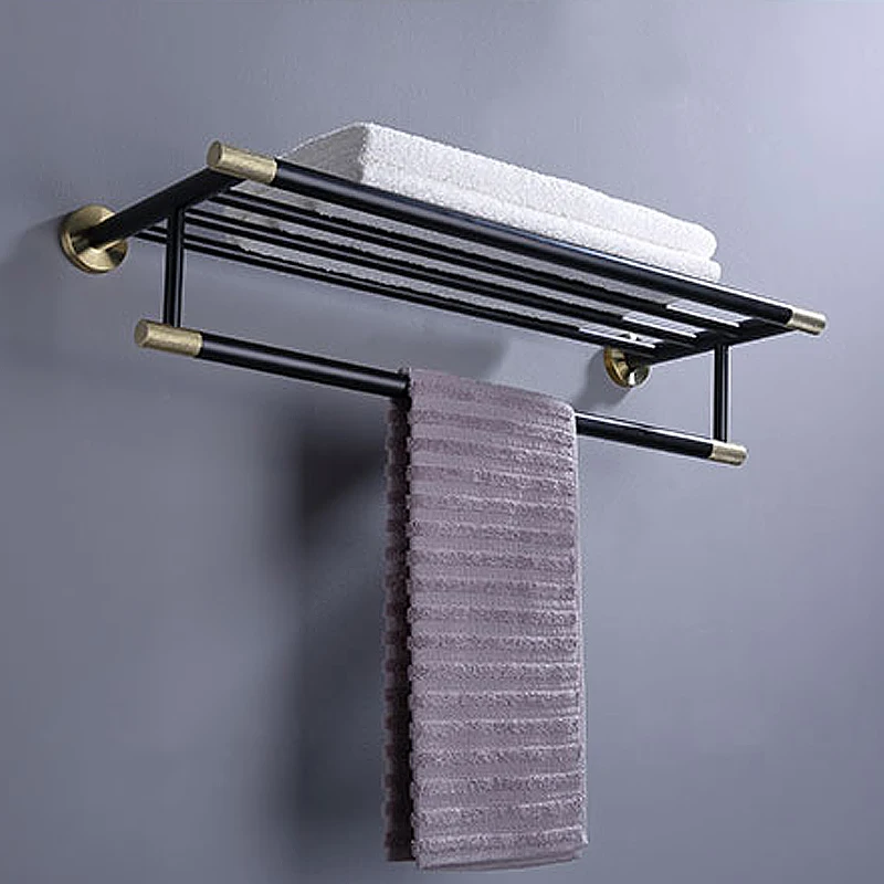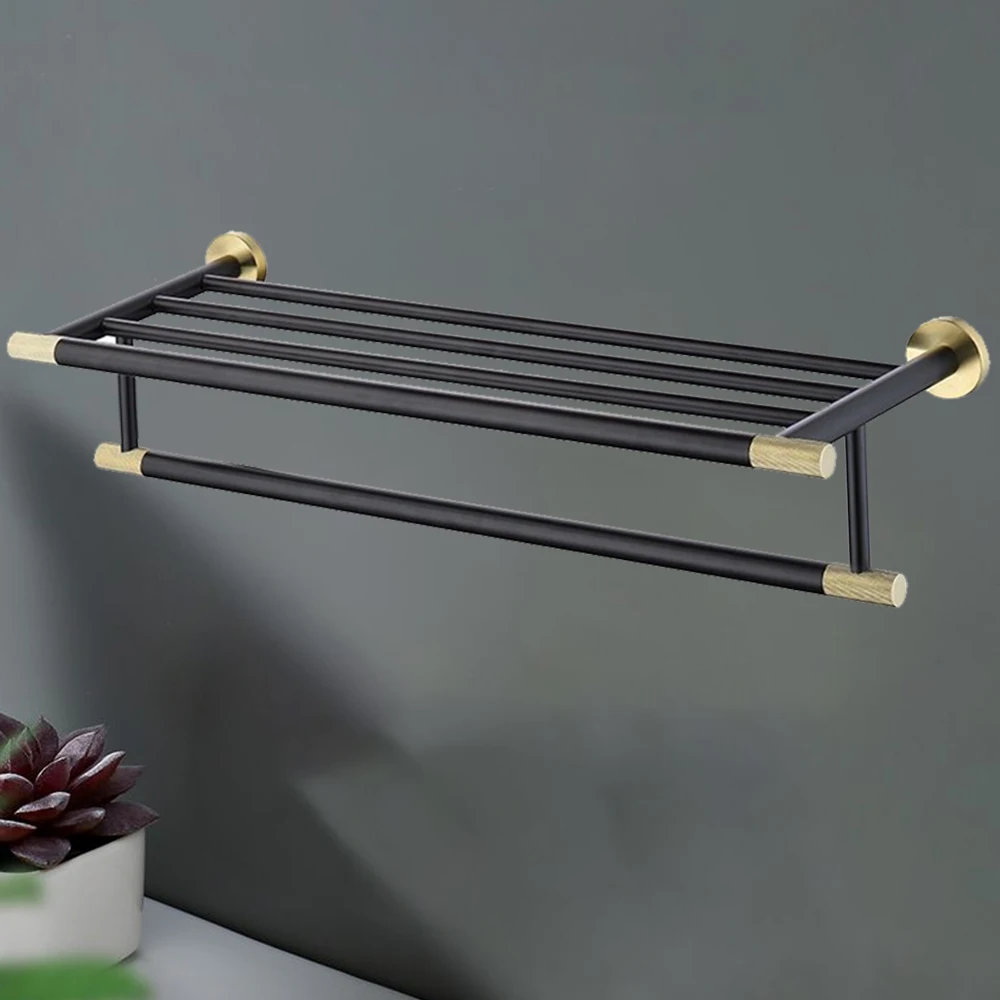 Stylish Black & Gold Dual Tier Towel Rack for Bathroom
