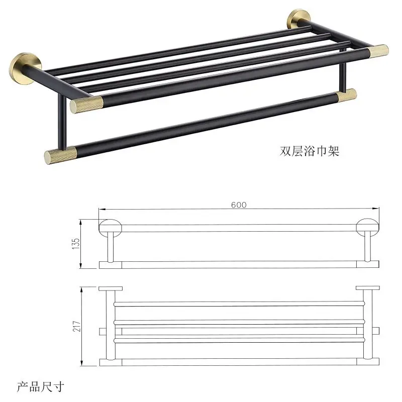Bathrobes & bath shower hanger dual tier towel rack bathroom accessories black&gold