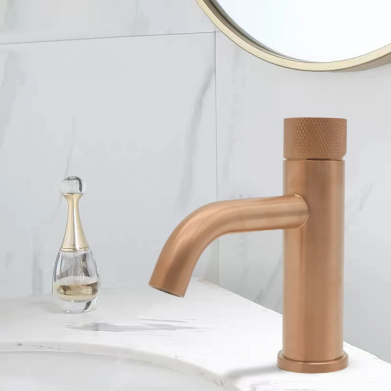 Rose Gold Brass Bathroom Sink Faucet Single Handle hot cold faucet desk mounted