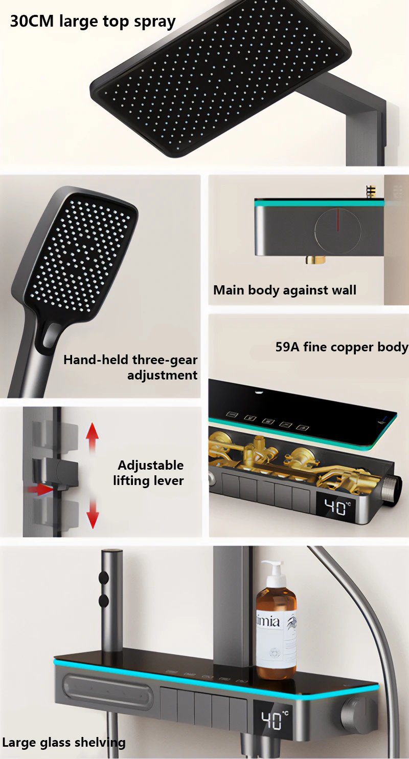 Brass gun grey rainfall shower set