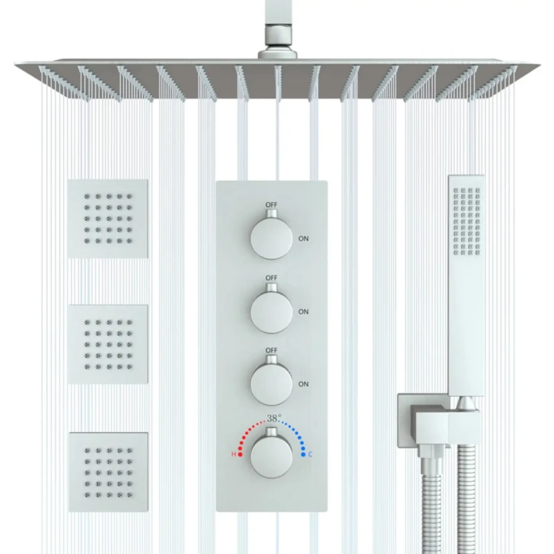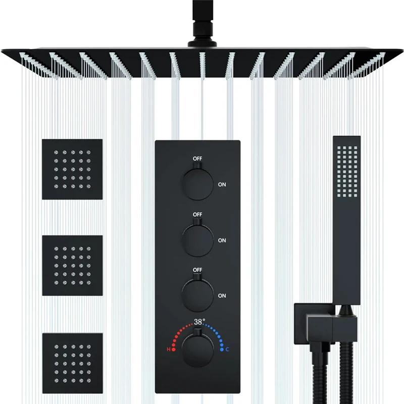 * 【Large Shower Sprayers】- This thermostatic shower valve, which locks the temperature safely at 38 degrees (100°F) to prevent discomfort caused by excessively high and low temperatures. Families with children and the elderly are also suitable for using the full-body shower system.