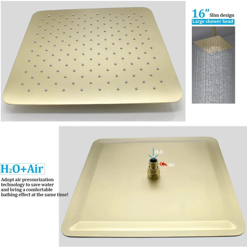 * 【16-inch Rain Shower Head】- 16 inches large shower head, spa-level shower experience, ultra-thin stainless steel material, beautiful and durable. Also, the handheld shower is equipped with a 59-inch shower hose and an adjustable shower seat, allowing you to enjoy a shower with a large flow and space.