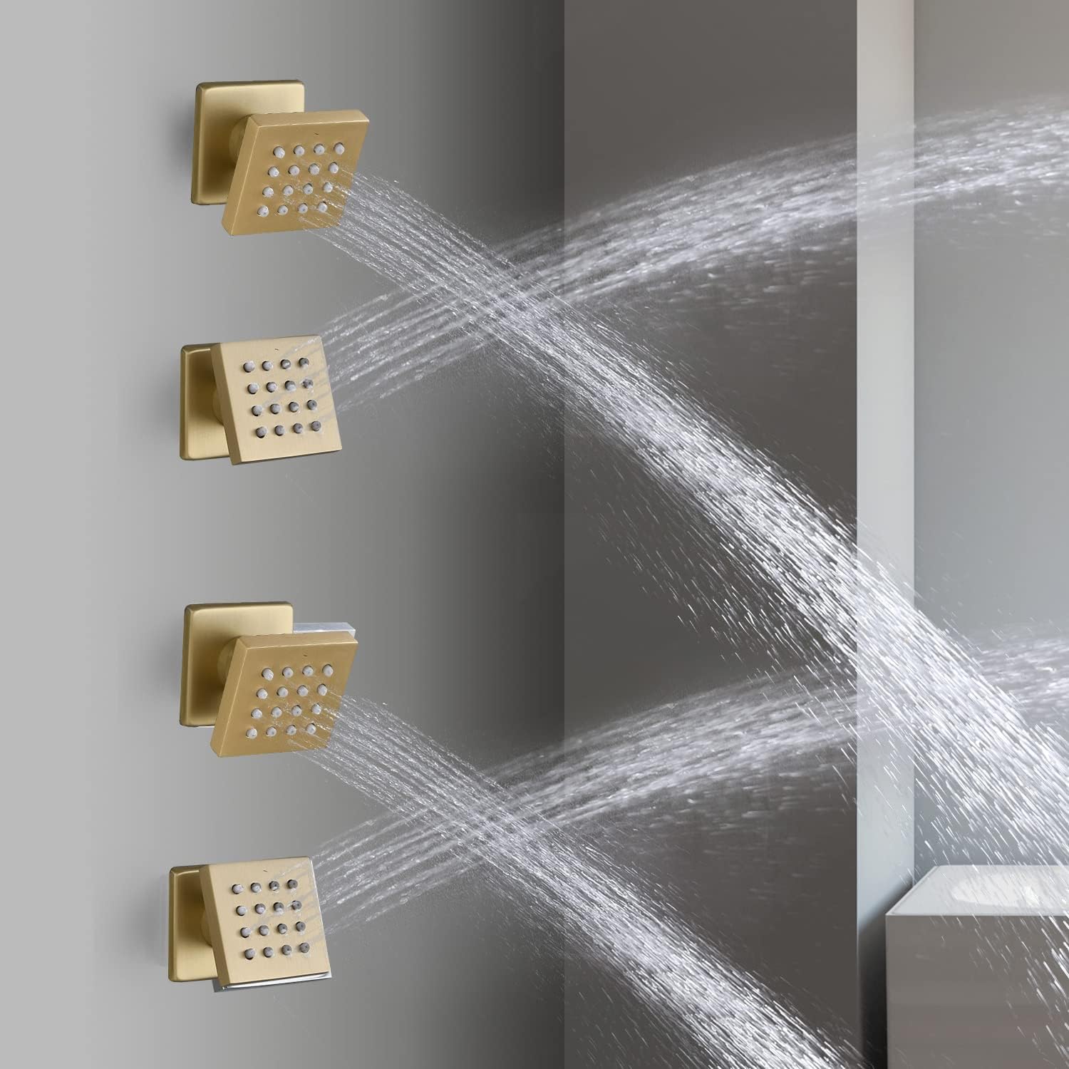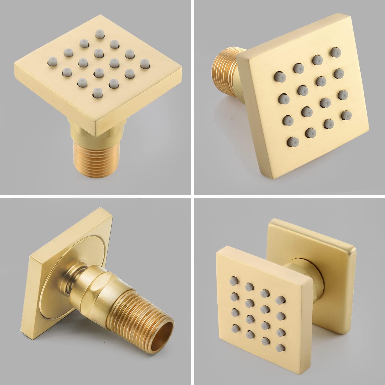 Brushed Gold 4 Pack HOMEDEC 2inch Brass Square Massage Shower Body Sprayer Jets