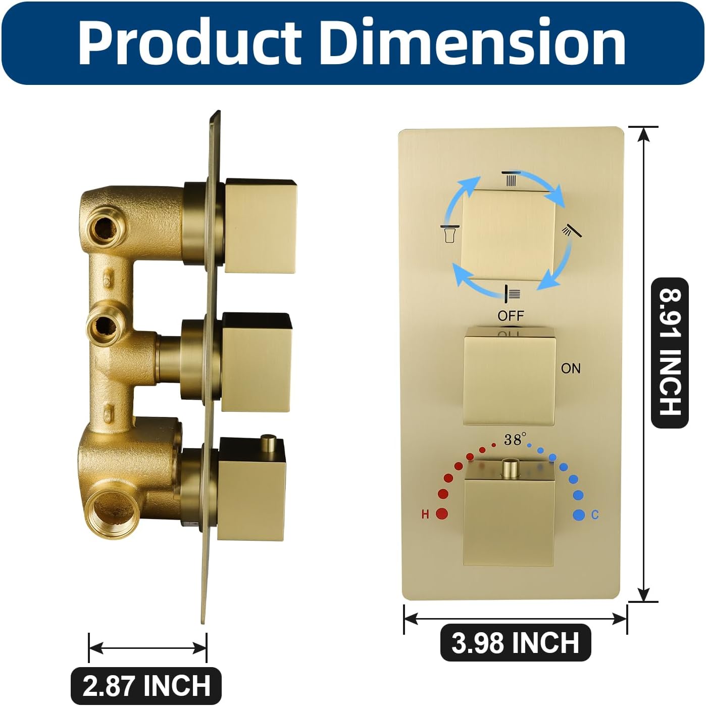 【4 Functions Shower Valve】The thermostatic 4-way shower valve controls the 4 shower functions with a 4-in-1 knob that can be twisted 360°, allowing unrestricted switching of shower modes. You can switch between the 4 modes as you wish and enjoy a relaxing shower. 【 Solid Brass Material】The shower faucet valve is made of top quality…