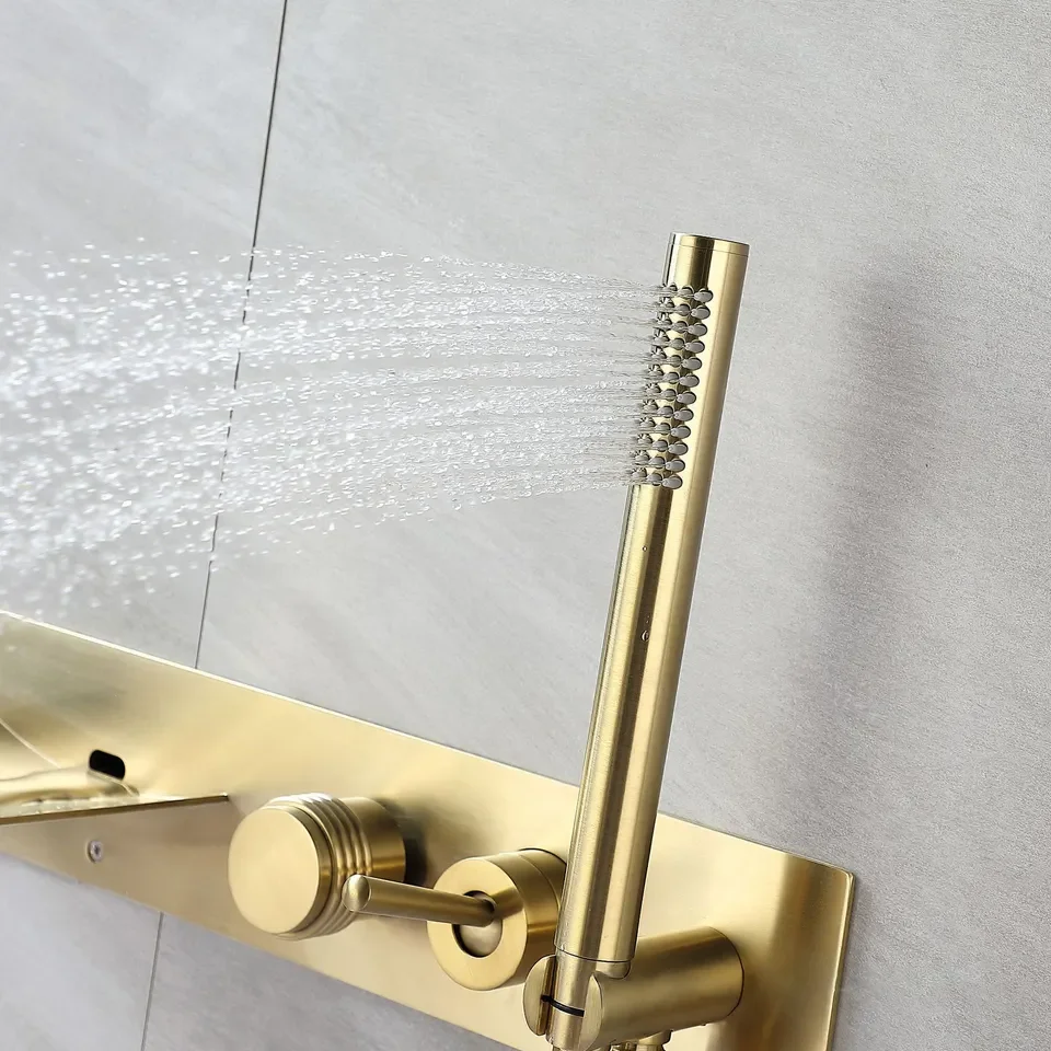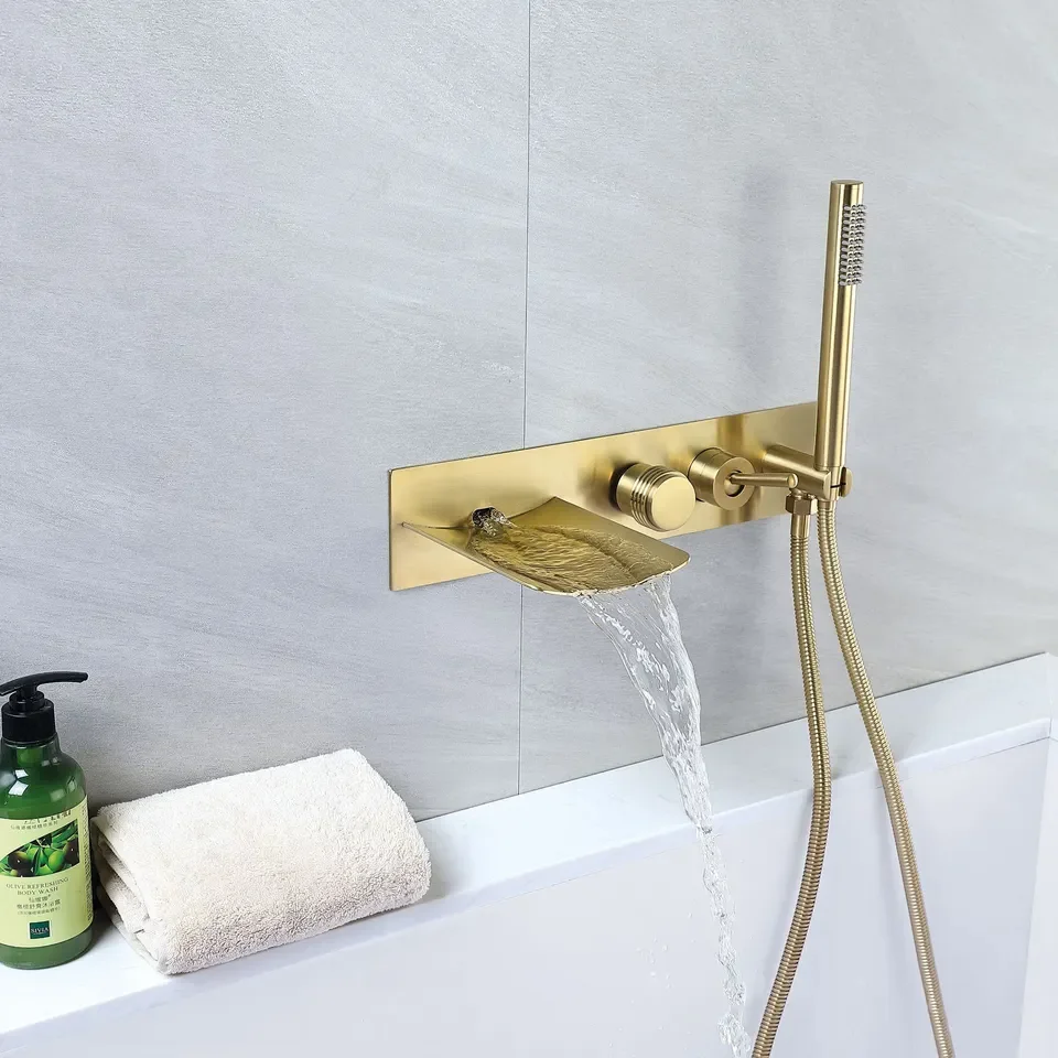Be the first to review “Brushed Gold Bathroom Faucet with Waterfall Spout”