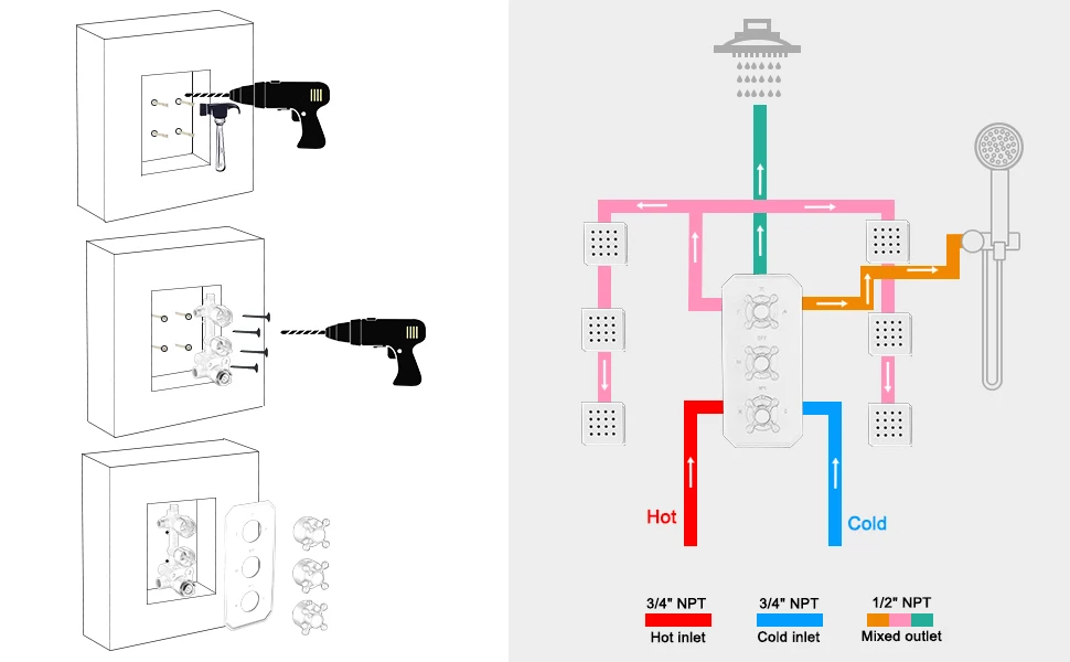 Ease Of Use: Comes with installation manual, easy to install. Connection: NPT, does not leak. This thermostatic shower valve can be adapted to all types of shower heads and tubs to meet the needs of your bathroom shower system.