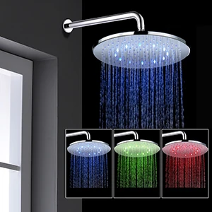 * Romantic LED Rain Shower Head 3 color of the LED changes automatically with the water temperature. No Battery required, safe to use, powered anti-clogging silicone jets maximizes water pressure.