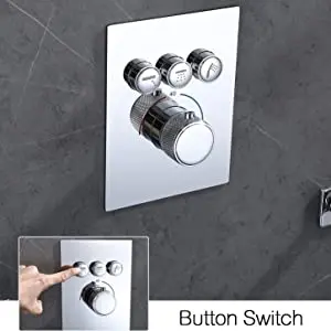 【THIS SHOWER SET INCLUDES】12-Inch Round Shower (Brass), Brass Hand Shower(Dual Function), 16-Inch Shower Arm (Brass), 59-Inch Shower Hose (Stainless Steel), Shower Bracket (Brass), Thermostatic press button Valve(Brass,can choose water from top shower or handles or body jets,also can let them working on same time), Shower Head (Brass).