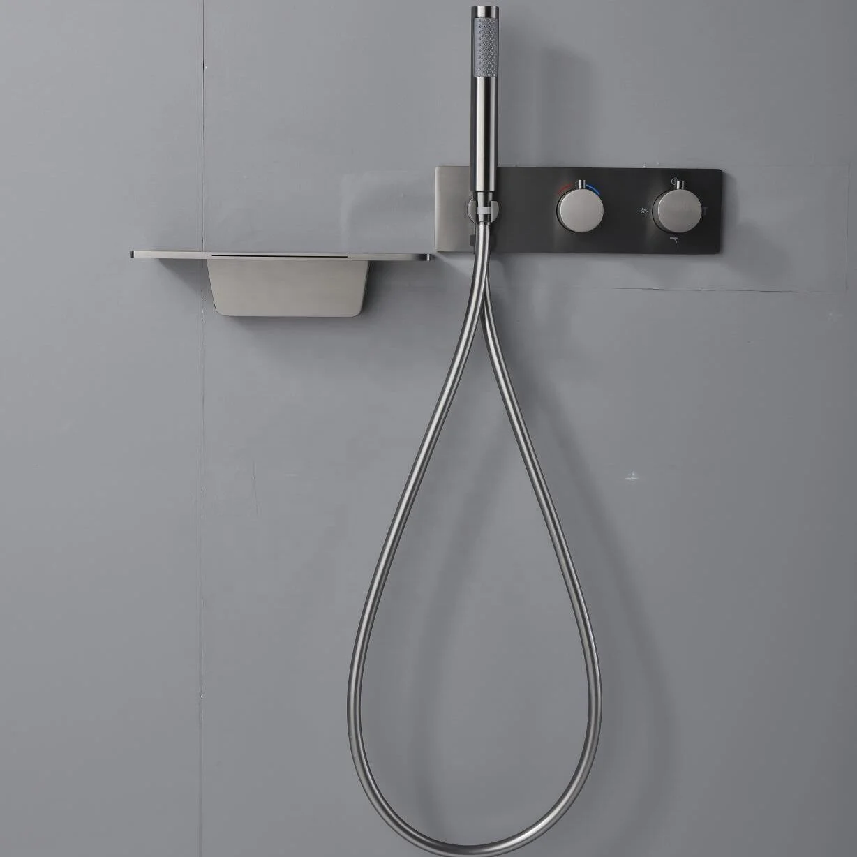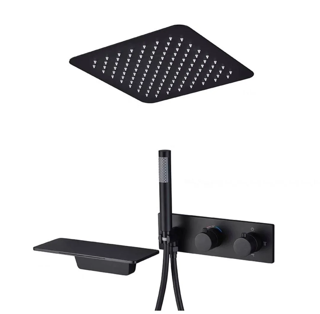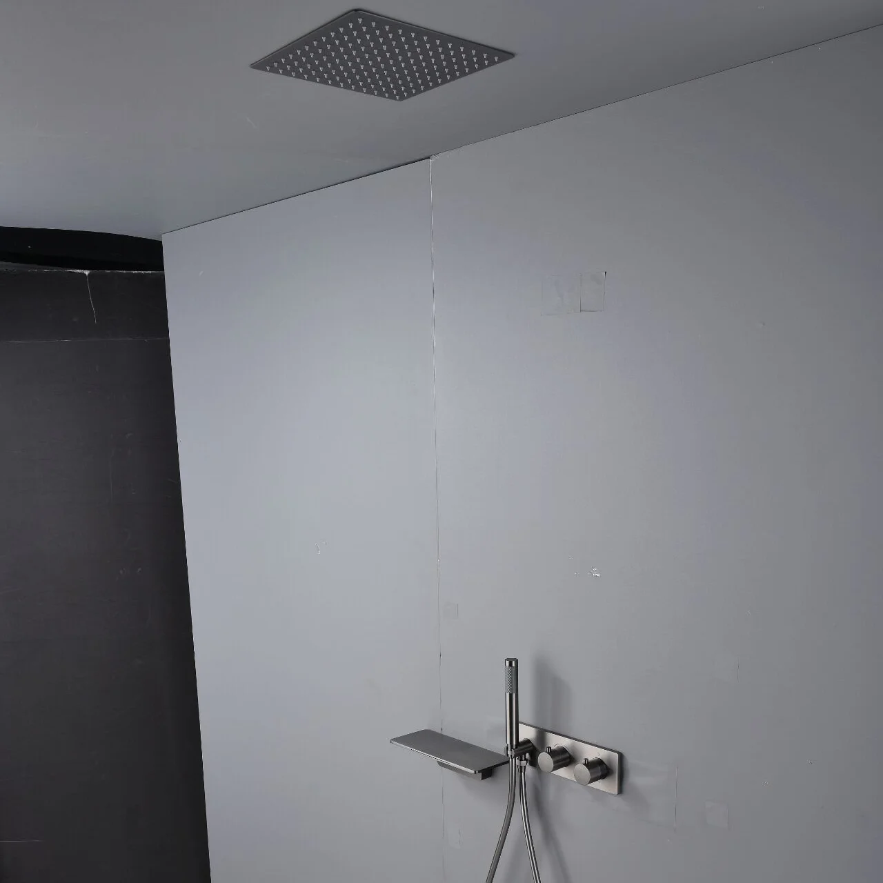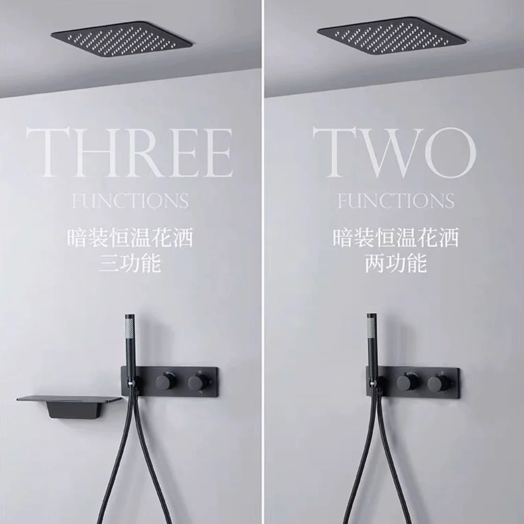 3 Ways Concealed Shower Set Ceiling Brushed Grey Shower Combine Set with Waterfall Bathtub Spout and Hand Shower