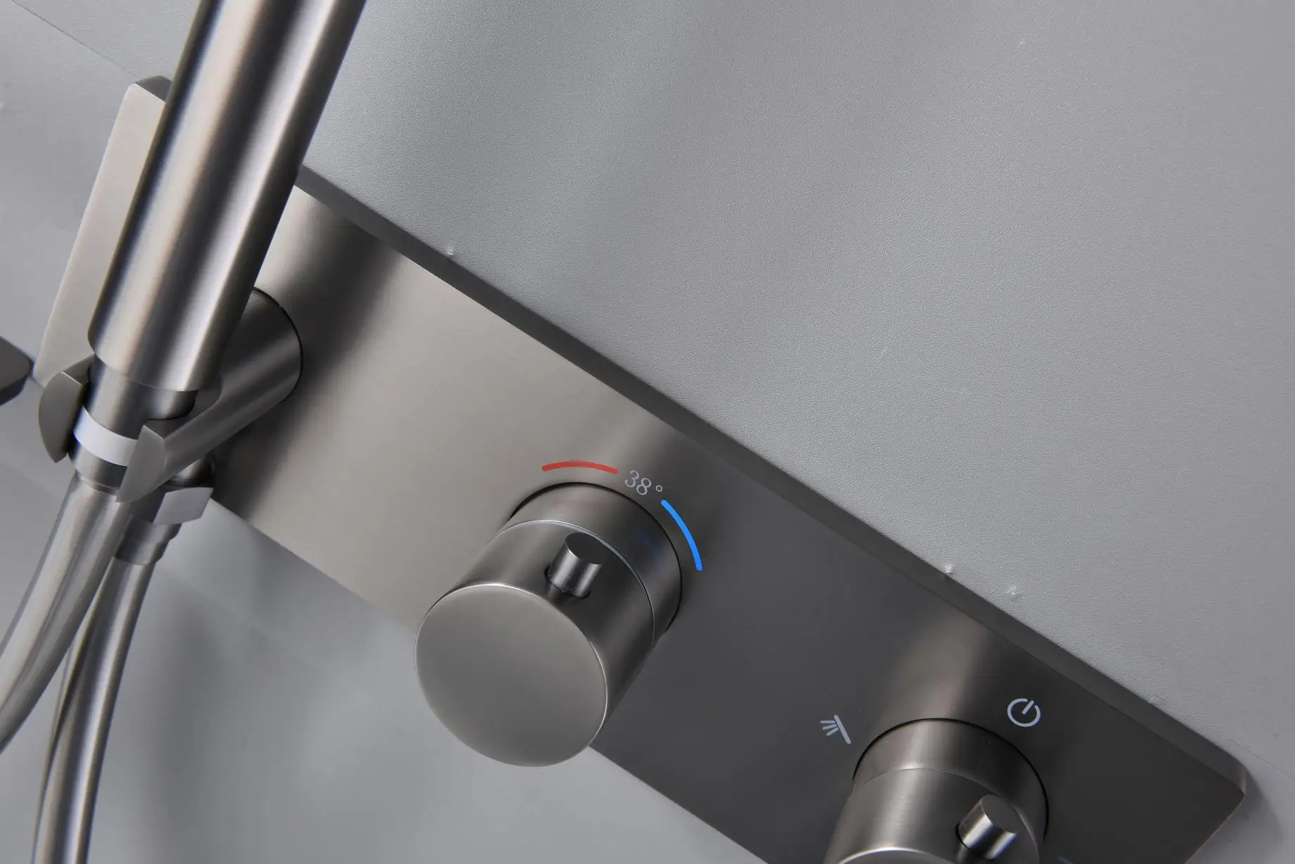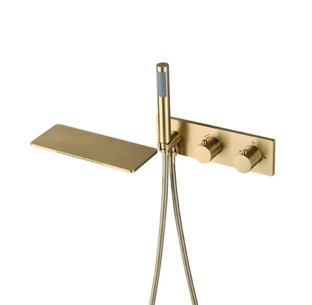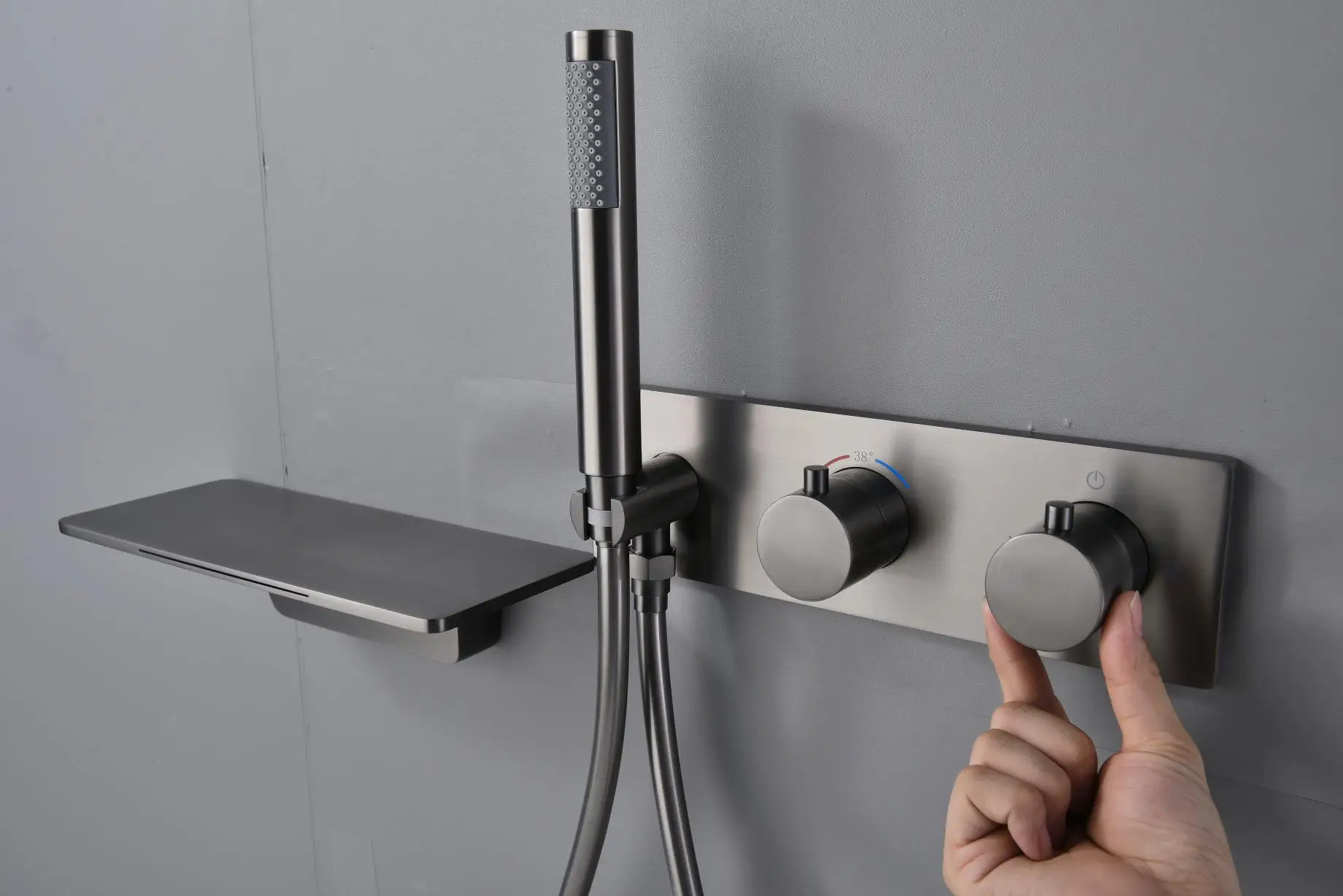 3 Ways Concealed Shower Set Ceiling Brushed Grey Shower Combine Set with Waterfall Bathtub Spout and Hand Shower