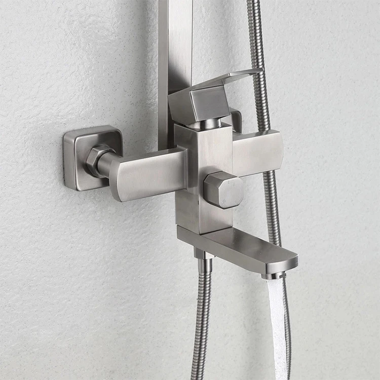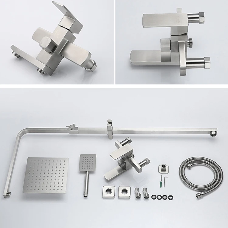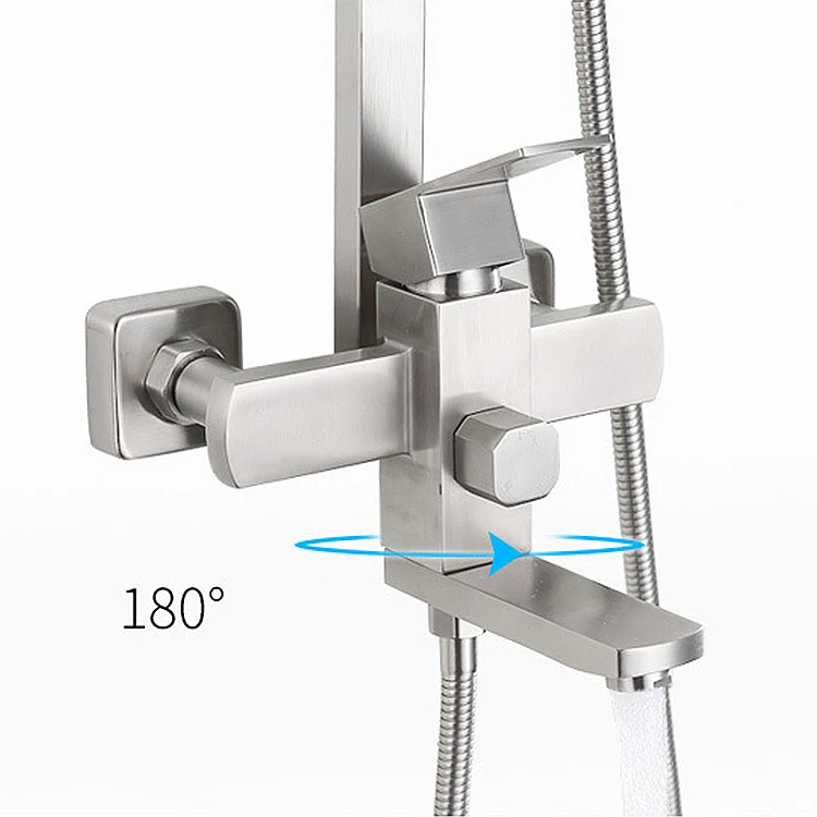 High quality stainless steel finish, including diverter valve. Single handle shower faucet control hot and cold water. Tub tap