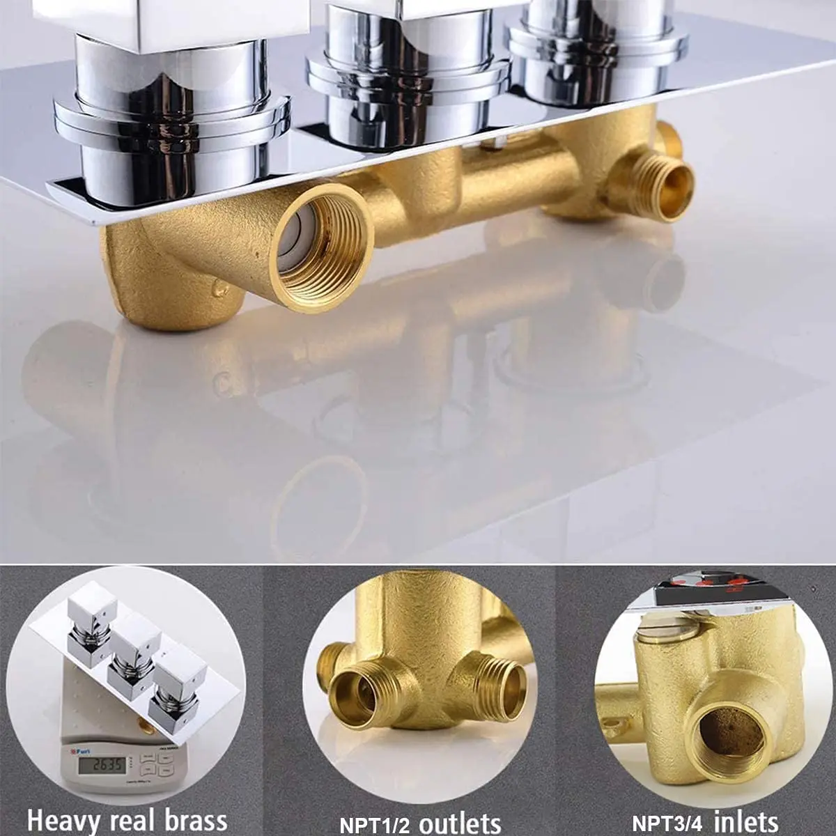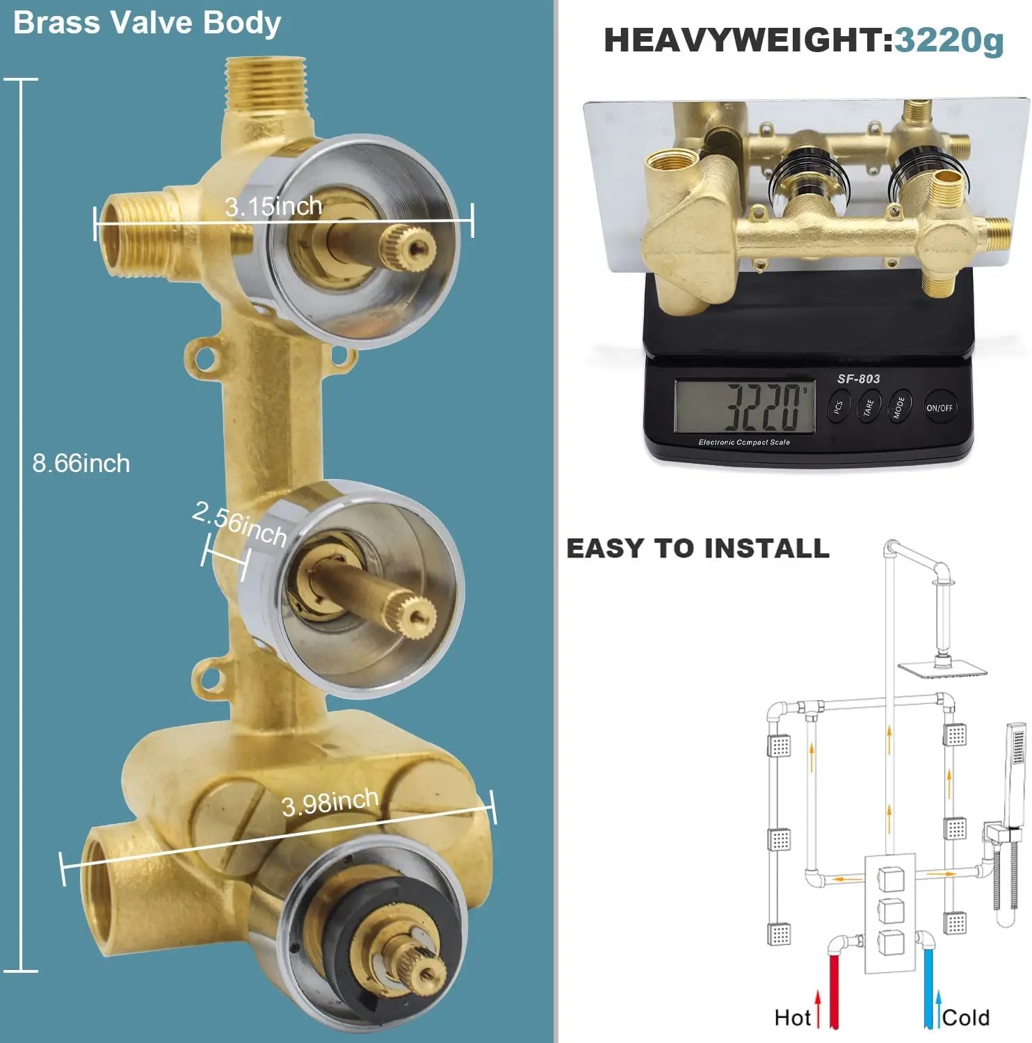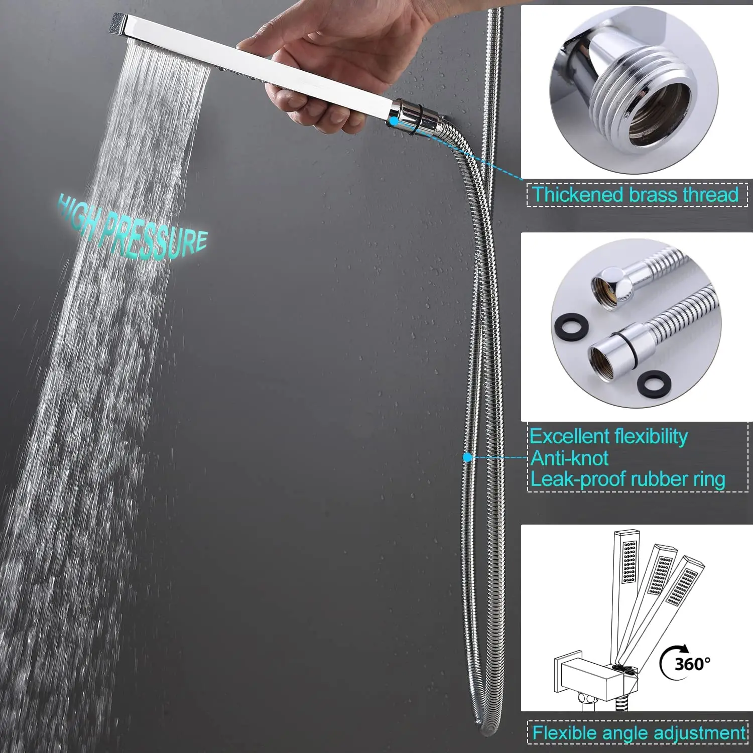 steel shower hose, shower valve, and trim kit. Made of solid brass and SS 304 stainless steel to avoid rust and leaks and ensure long-lasting durability. |