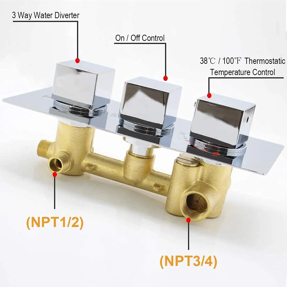 The valve can keep the temperature at 38° by balancing the mixing function, and diversion knob, and switching the shower at will.