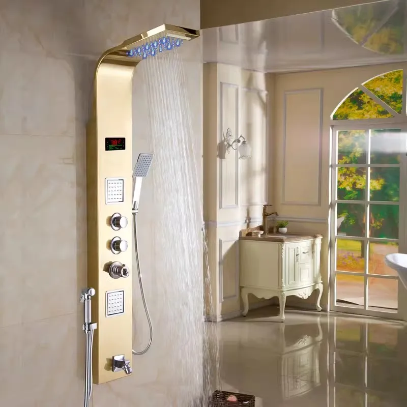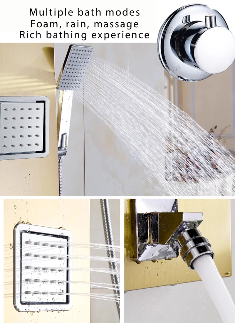 5 function shower panel:Rainfall,Waterfall,Horizontal Massage spray 2-setting,hand shower,water spout