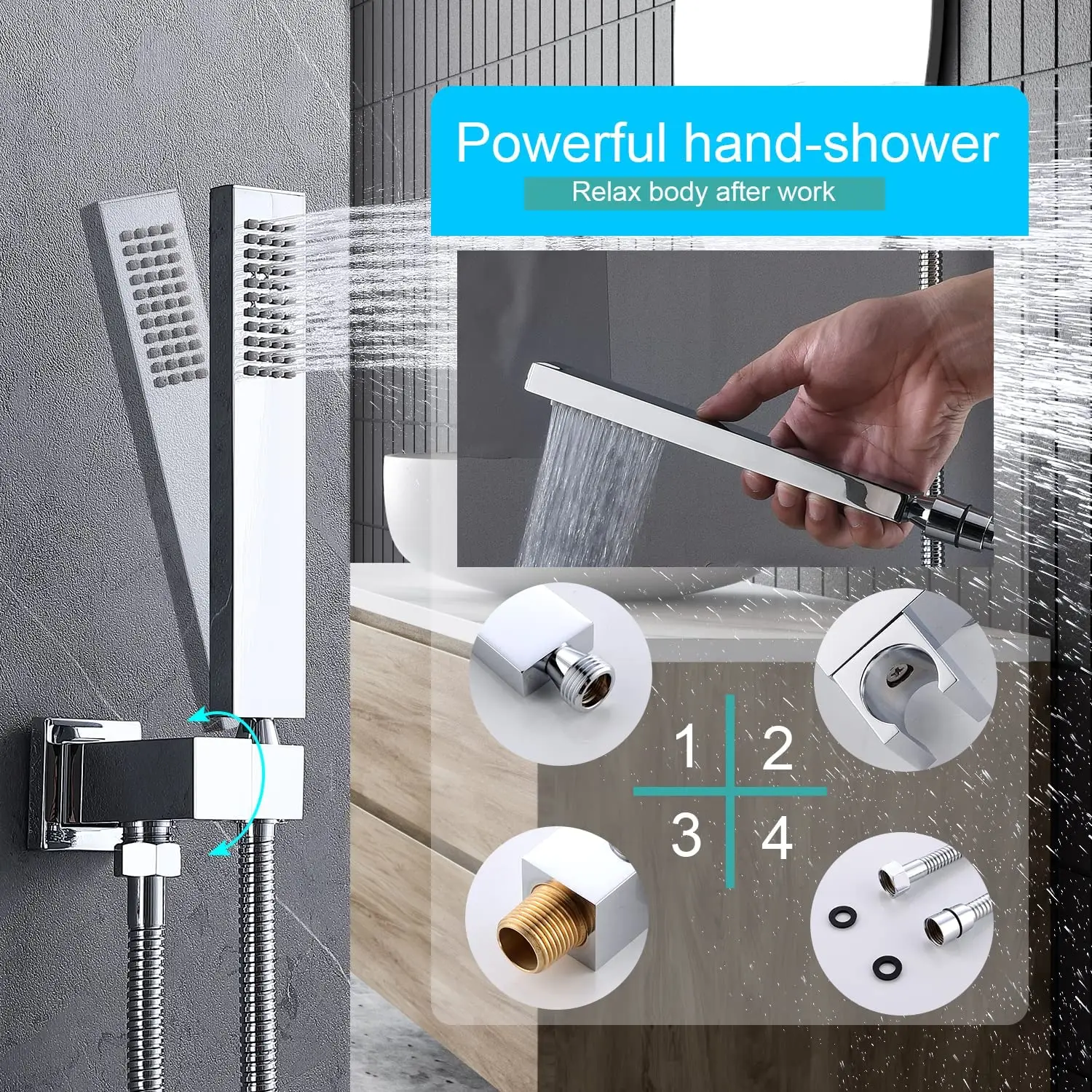 No need to re-adjust the temperature every time, the thermostatic valve body helps protect you from hot water burns caused by