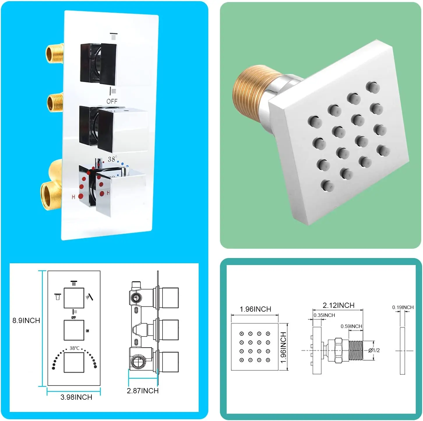 switch between various shower modes according to your needs (But not at the same time), Thermostatic knob could easily adjust the hot/cold water; |