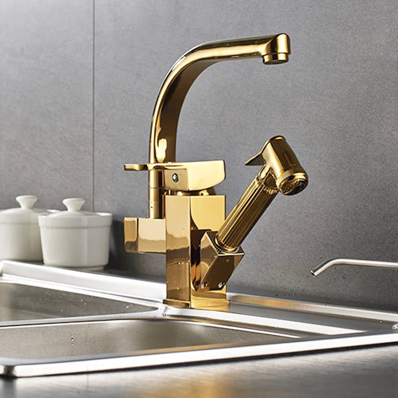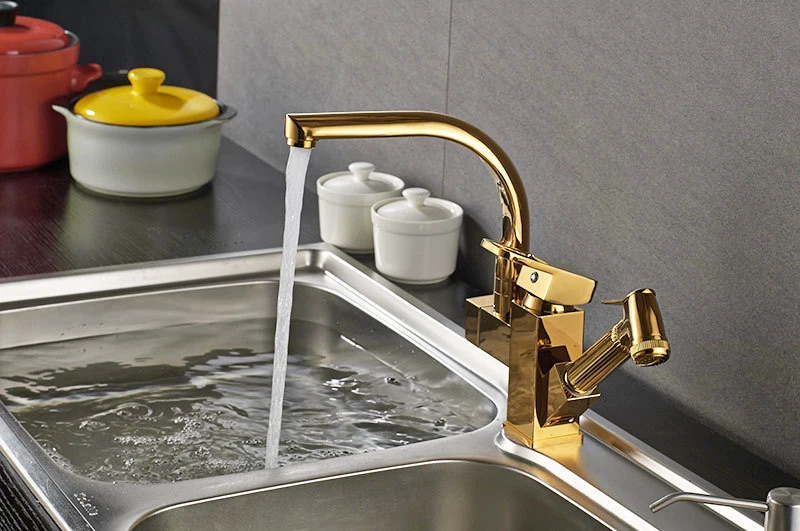 This pull down kitchen faucet with 360 Degree Swivle Sprayer and Spout can turn on at the