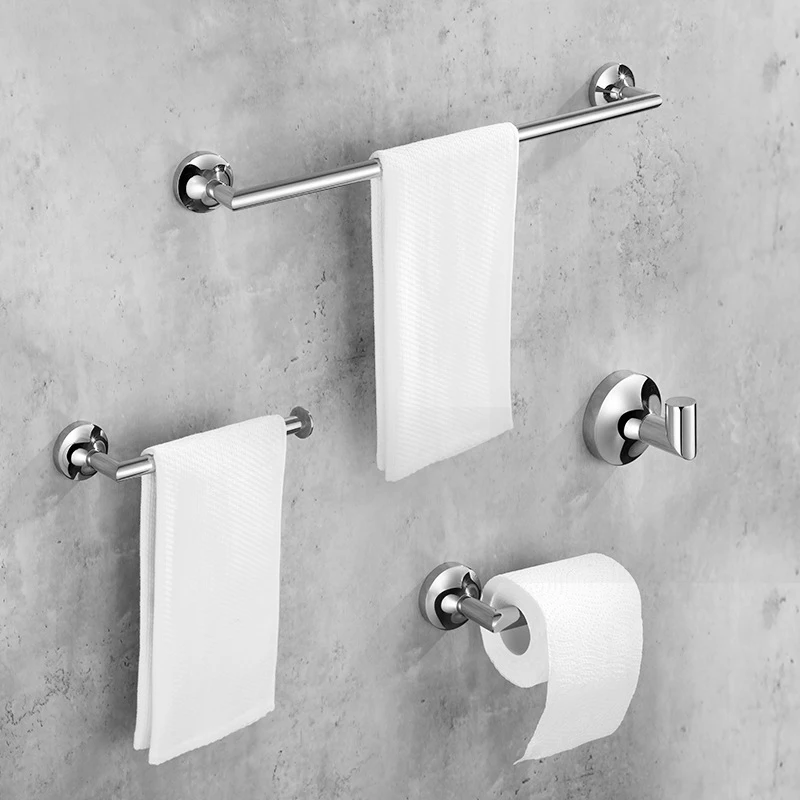 One towel rack, one towel rod, one paper roll holder, one coat hook