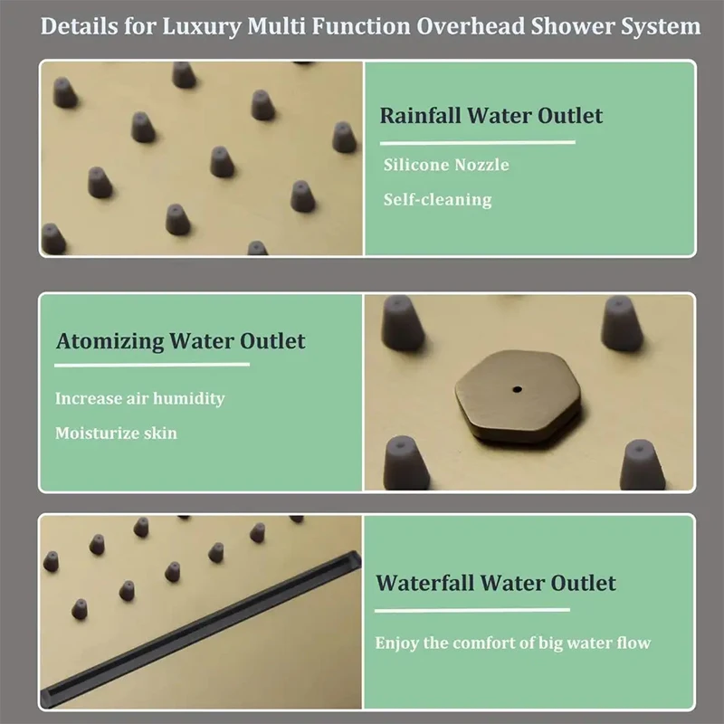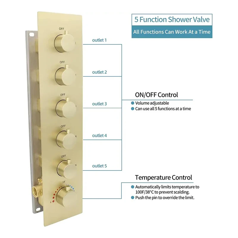* *thermostatic shower valve 5 handles * 6*brass spa body jets * 1*hand shower head * 1*brass holder &connector * 1*stainless steel shower hose 1.5m |