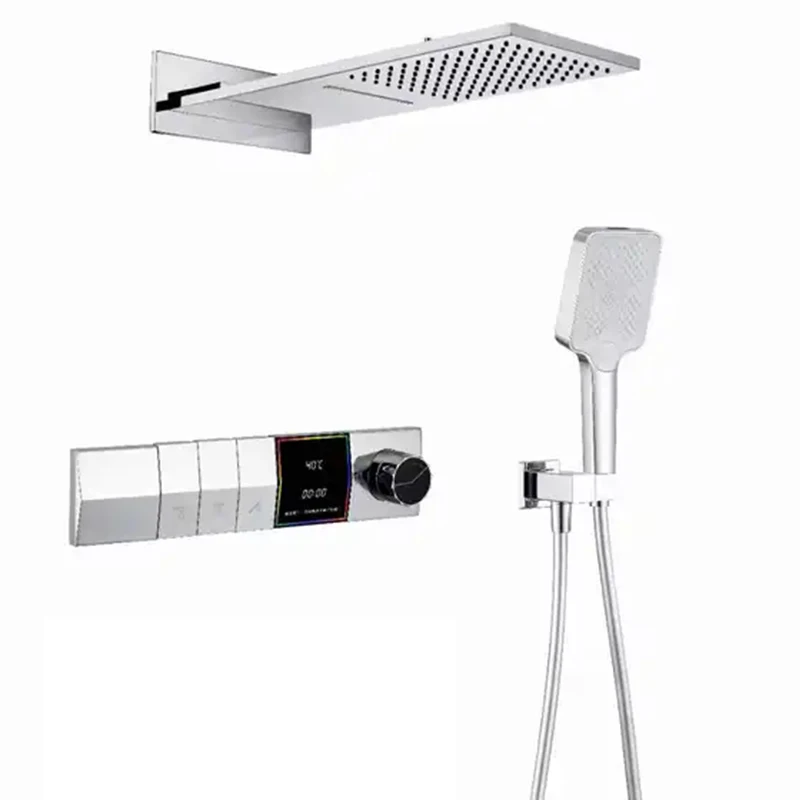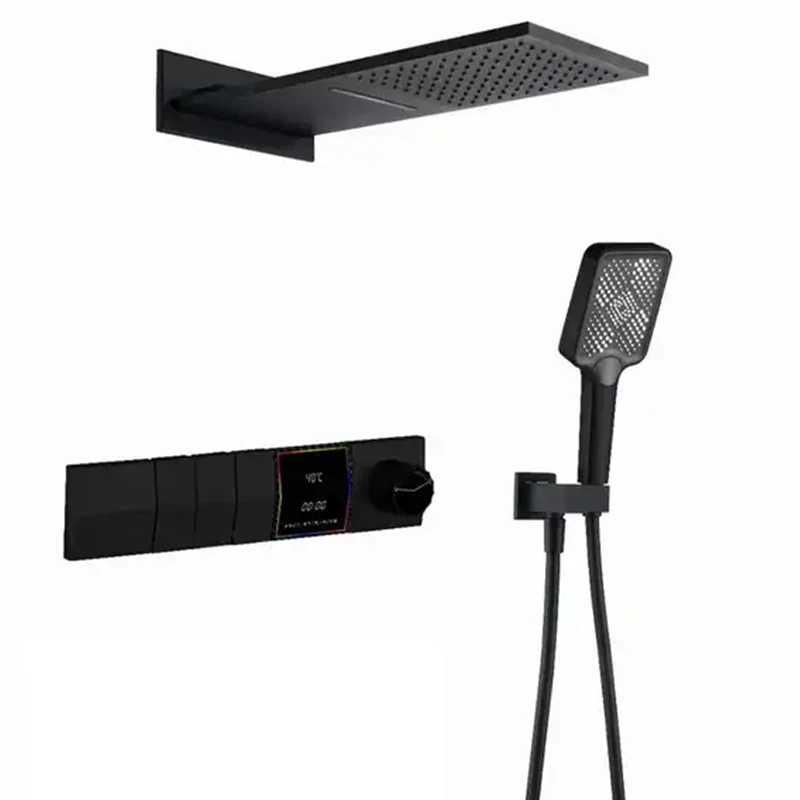 Concealed Thermostatic Shower Set in-Wall Waterfall Square Top Spray