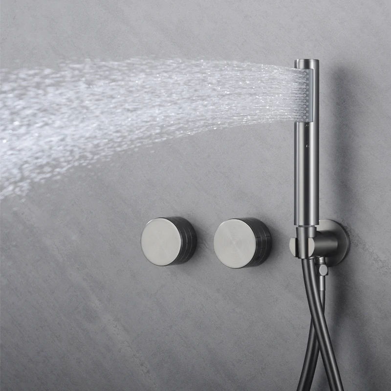 Be the first to review “Designer 2 Ways Solid Brass Brushed Gold High Pressure Embedded In Wall Bathroom Concealed douche Rainfall Shower System Set”