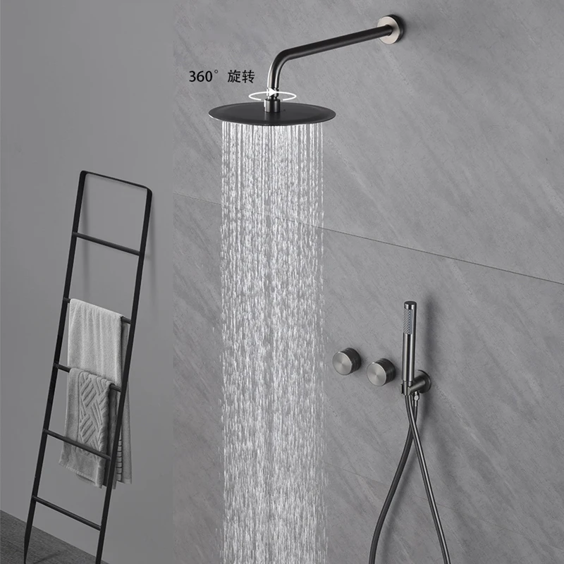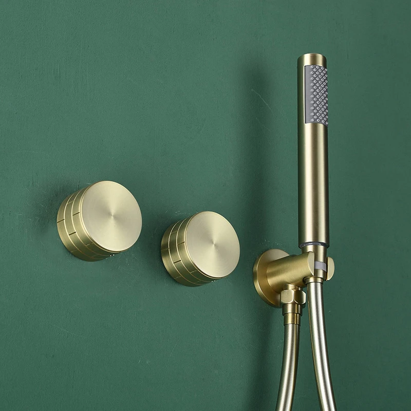 Designer 2 Ways Solid Brass Brushed Gold High Pressure Embedded In Wall Bathroom Concealed douche Rainfall Shower System Set