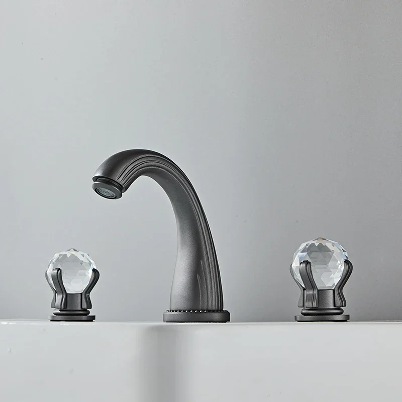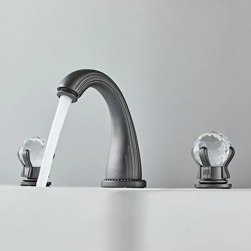 Deck mounted bathroom basin faucets