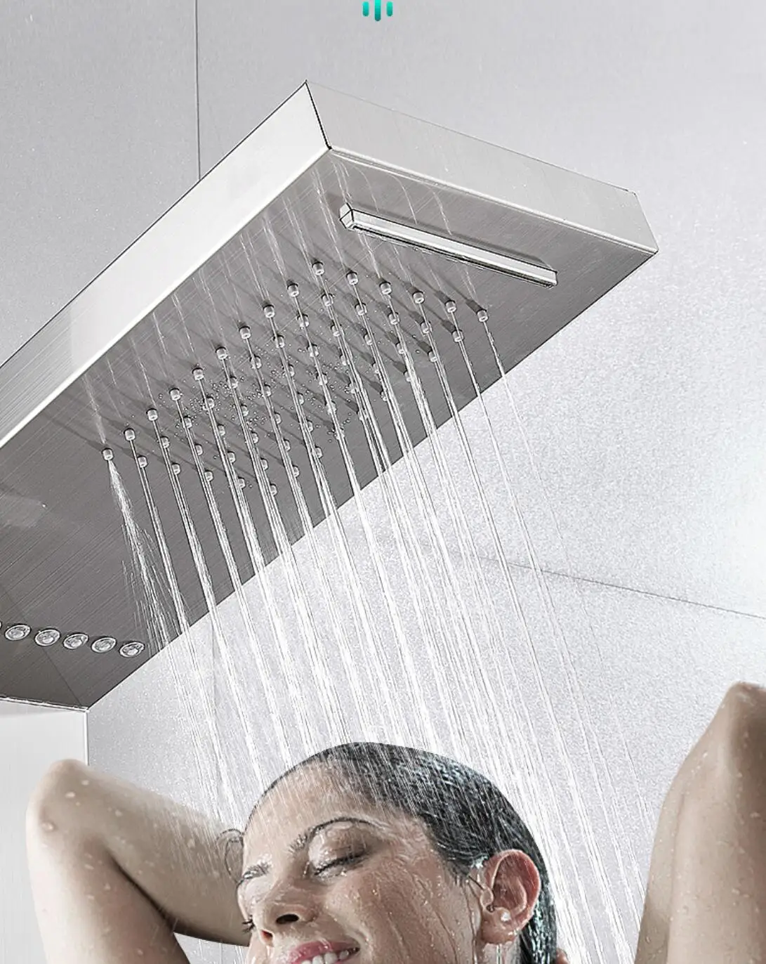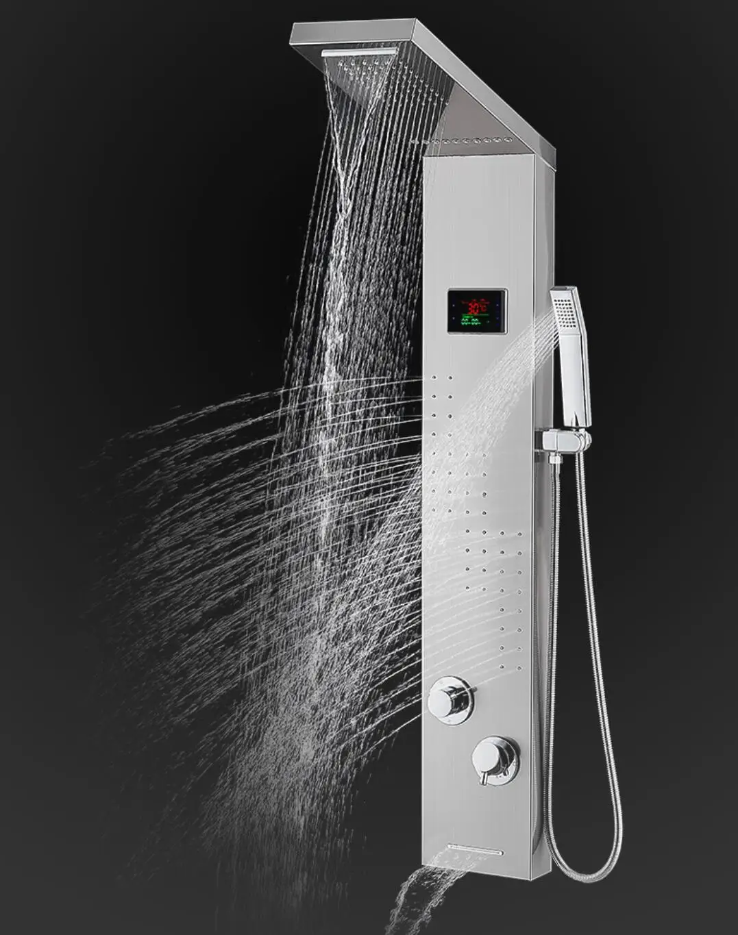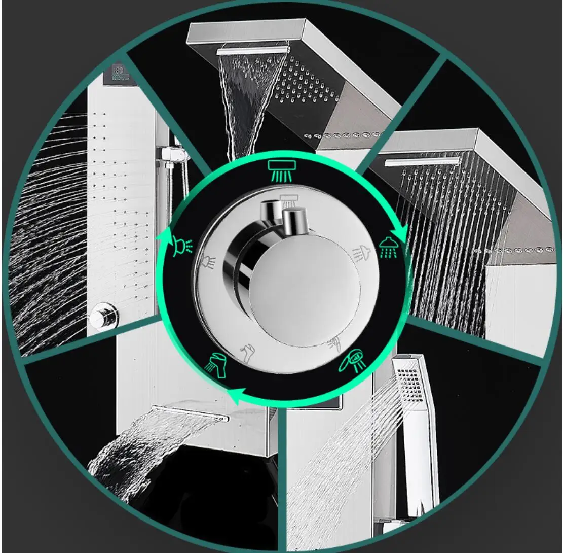 5 function shower panel:Rainfall,Waterfall,Horizontal Massage spray 2-setting,hand shower,water spout