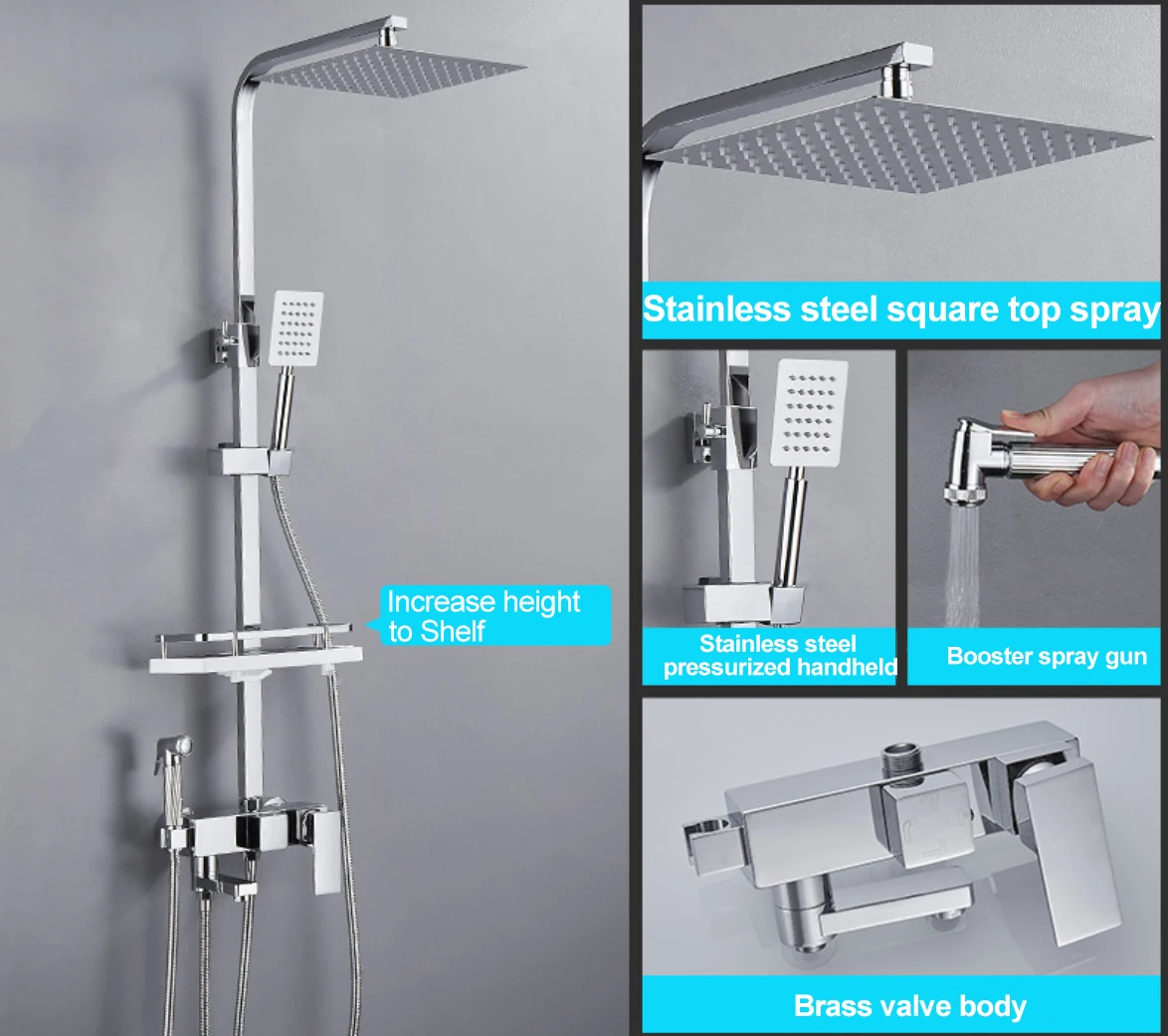 Designers Exposed b & s faucets 8” Square Head Bathroom Bath Shower Faucet Set Rainfall