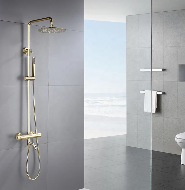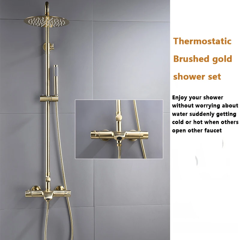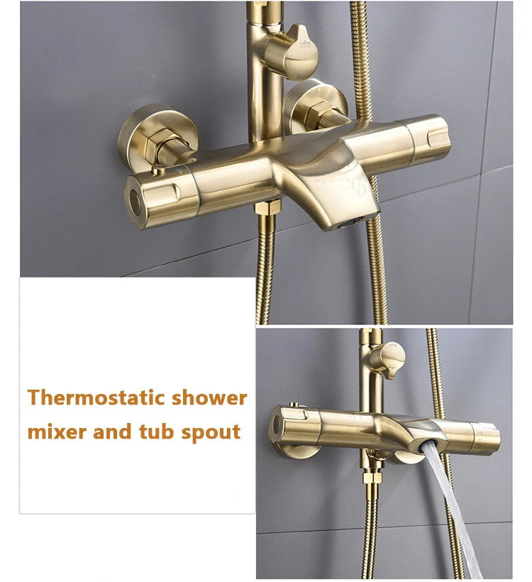 Family Hotel Bathroom Brushed Gold 3 Triple Function Modern Rainfall System Shower Set