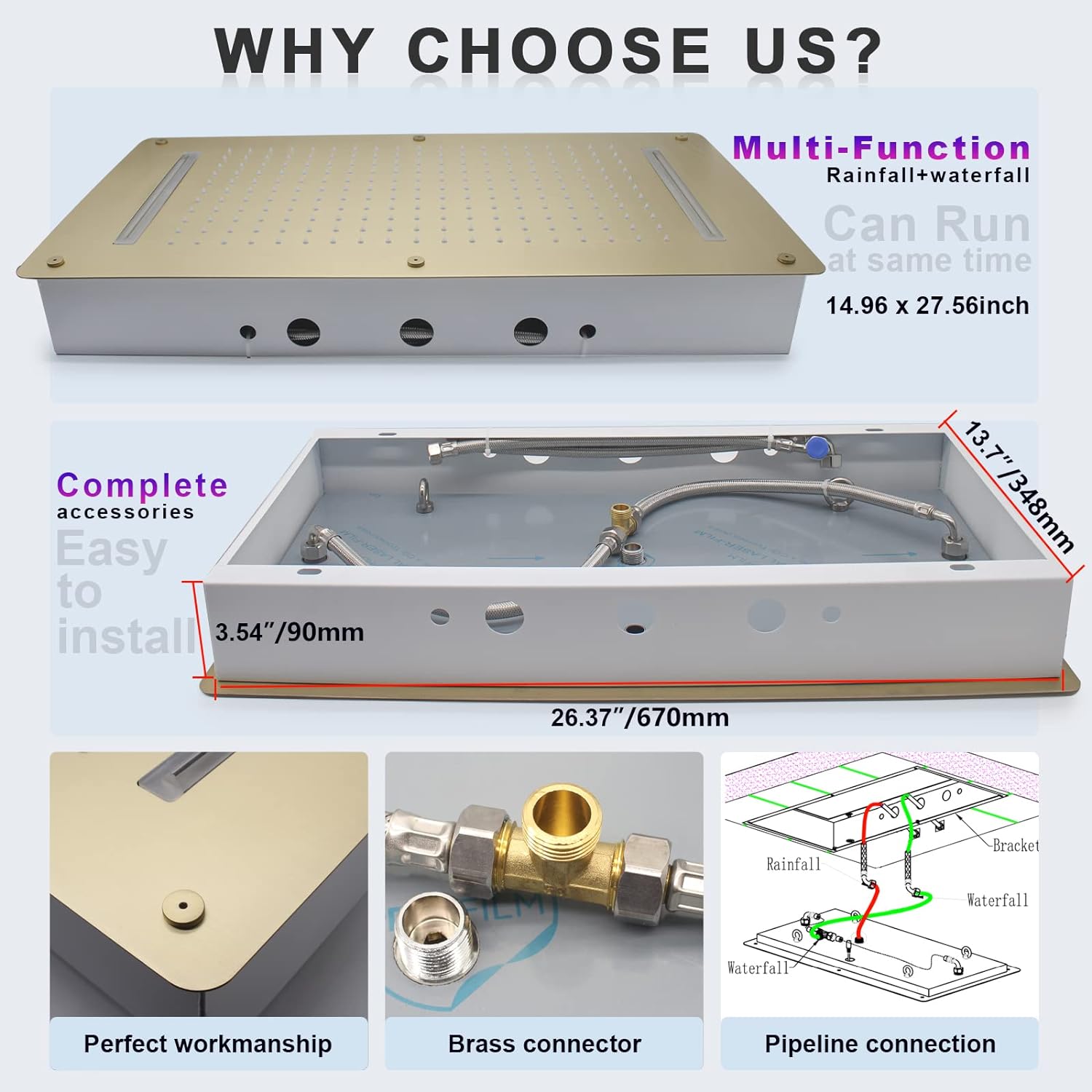 14.96 x 27.56inch 2 In 1 Functions Rain Shower with 4pcs Adjustable Body Jet