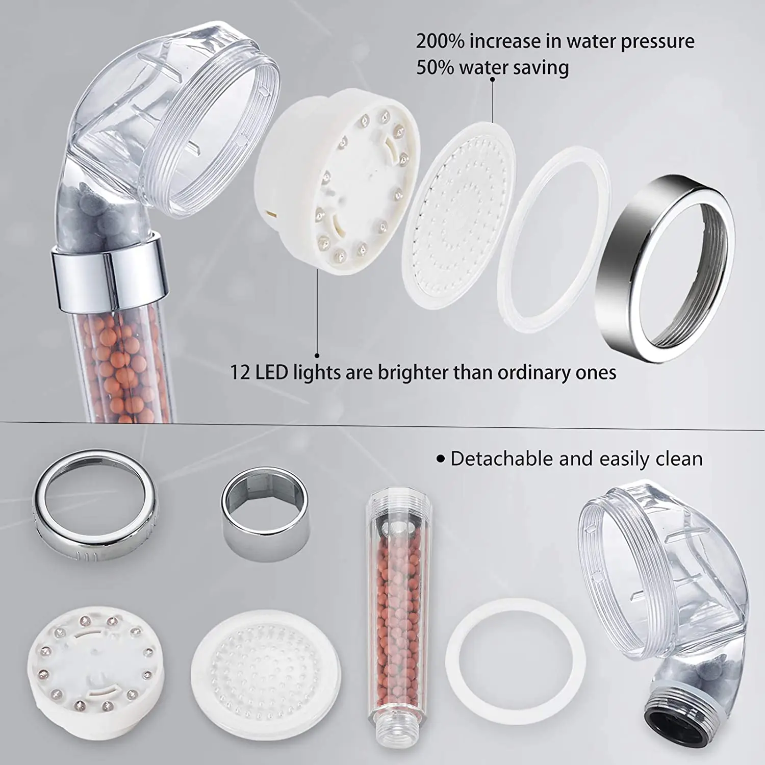 LED high pressure shower head